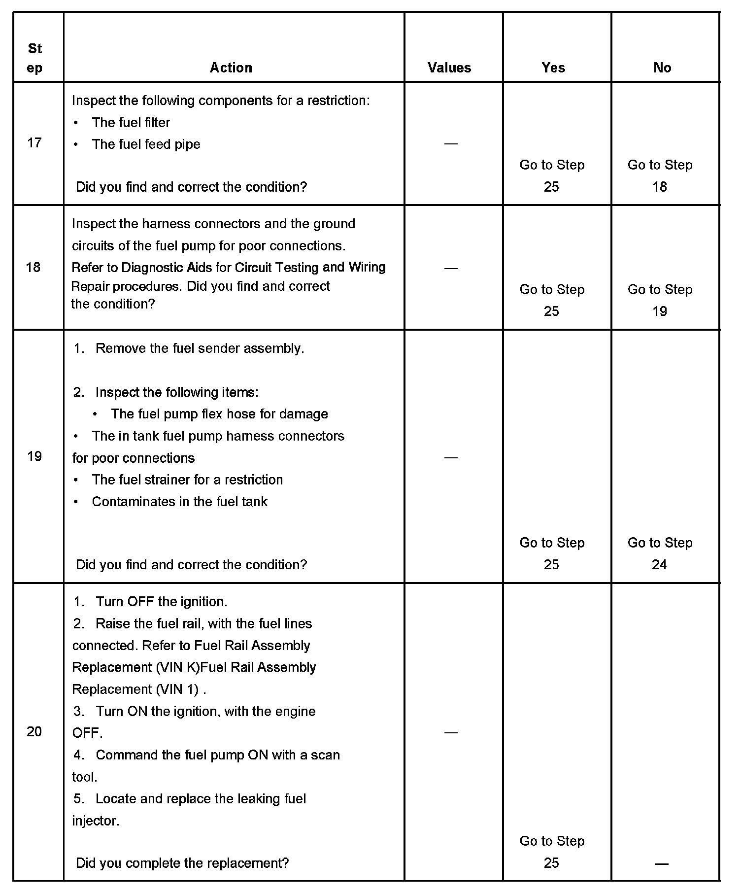 18. This step verifies that a circuit condition is not the cause of a fuel pressure concern. Inspect all fuel pump electrical circuits thoroughly.