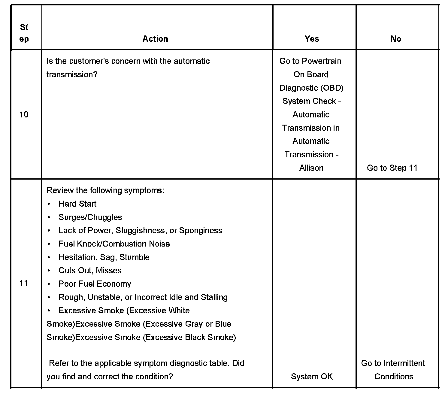 The Diagnostic System Check-Computers and Control Systems is an organized approach to identifying a condition that is created by a malfunction in the electronic engine control system. The Diagnostic System Check must be the starting point for any driveability concern. The Diagnostic System Check directs the service technician to the next logical step in order to diagnose the concern. Understanding, and correctly using the diagnostic table reduces diagnostic time, and prevents the replacement of good parts.