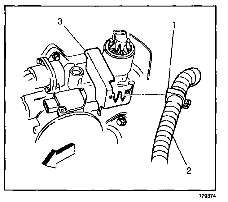 9. Remove the electrical harness retainer clip (1) from the accelerator control cable bracket (3) if applicable.