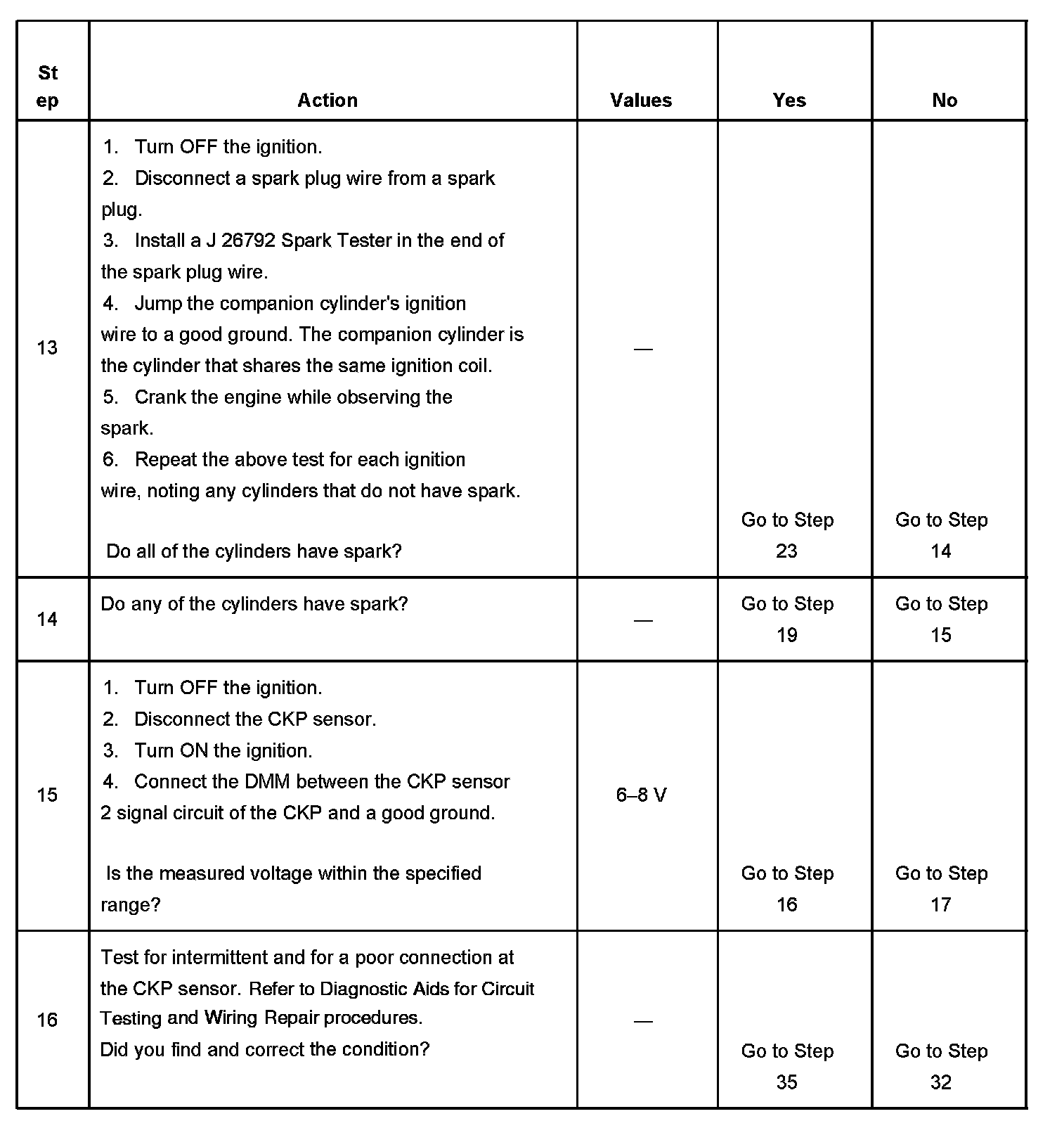 The numbers below refer to the step numbers on the diagnostic table.