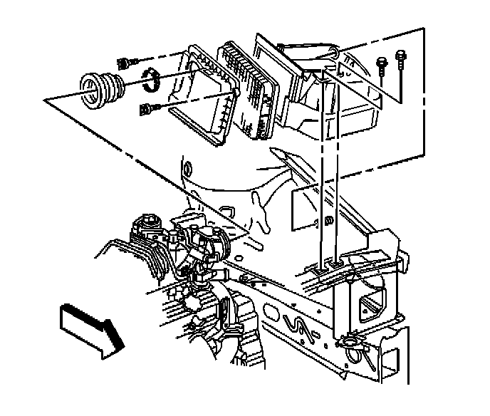 4. Carefully remove the PCM from the air cleaner housing and carefully position the PCM aside protecting the PCM from electrostatic discharge and/or impact.