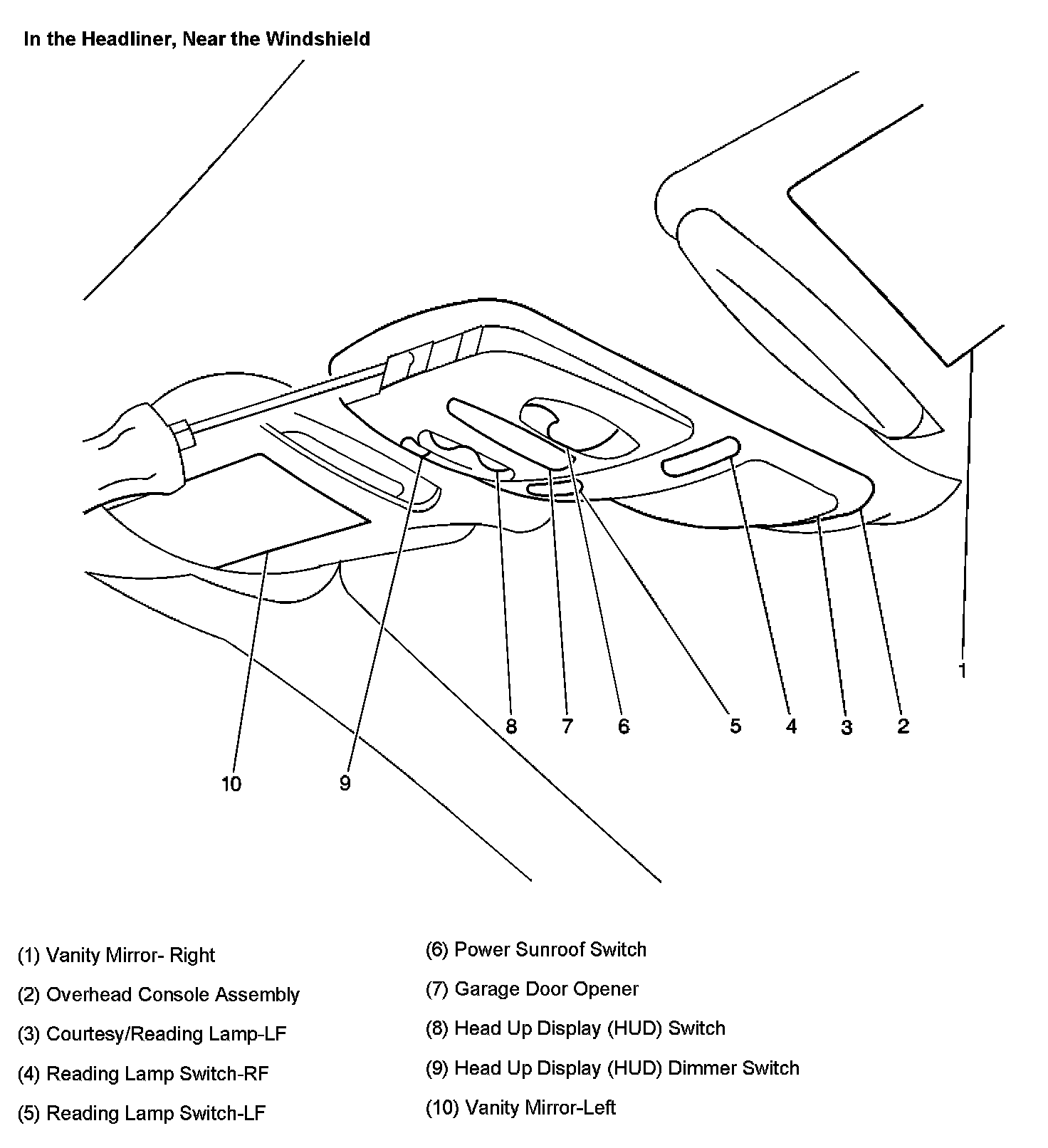In The Head Liner, Near The Windshield: