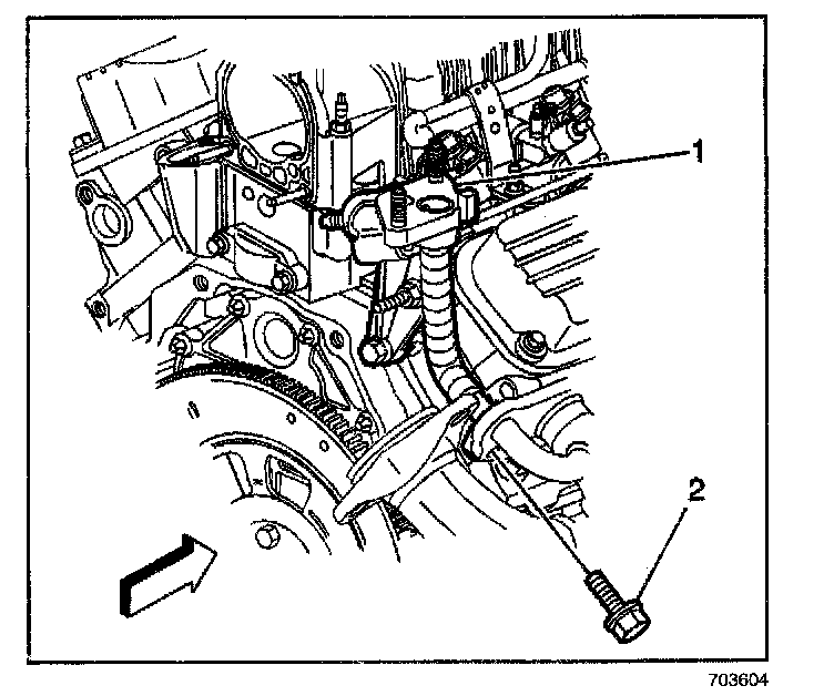 2. Remove the exhaust gas recirculation (EGR) valve inlet adapter pipe mounting bolt (2) from the exhaust manifold.