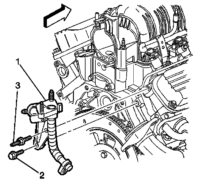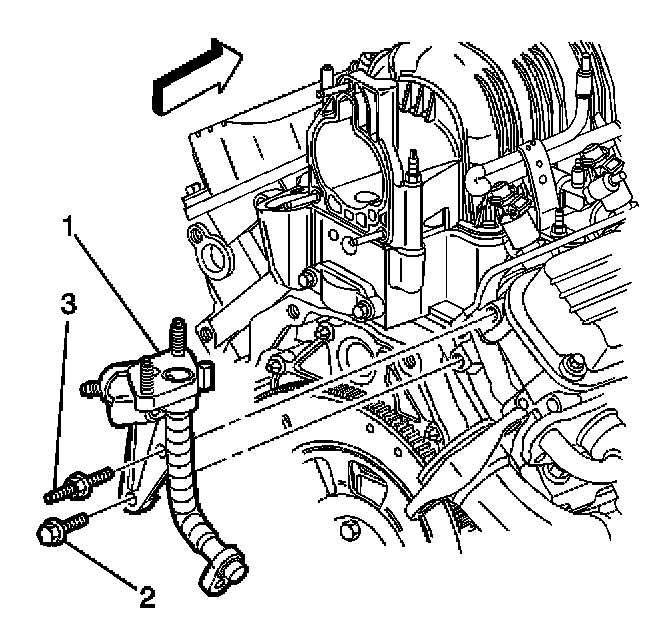 6. Remove the EGR valve inlet adapter pipe bolts (2,3).
