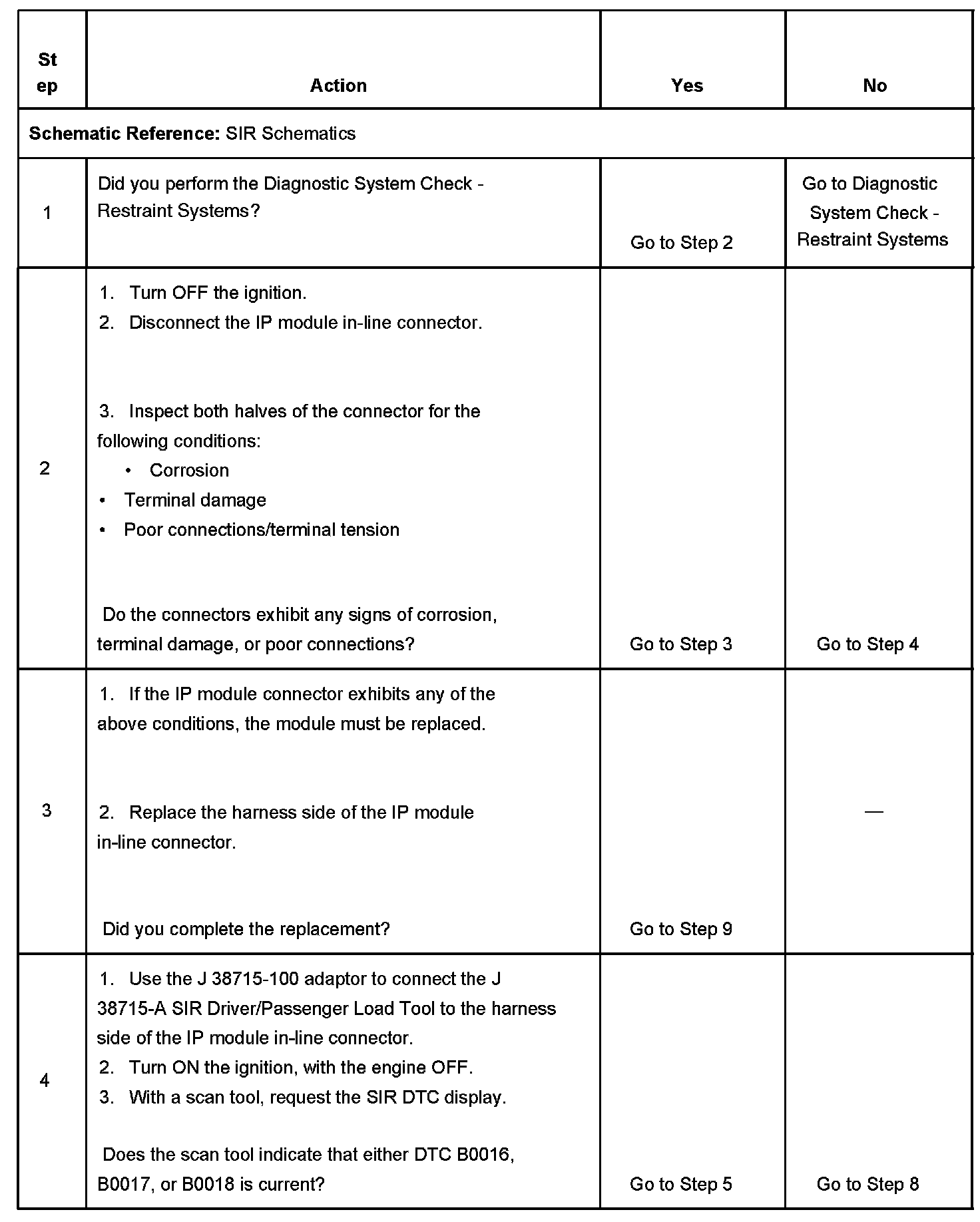 - DTC B0016 will set when the SDM detects the IP module deployment loop resistance is less than 1.3 ohms for 500 milliseconds.