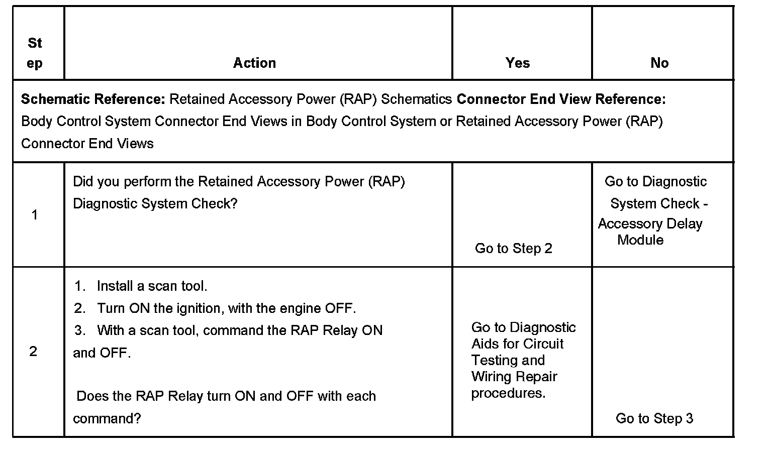 3. This step verifies that the Body Control Module (BCM) is providing ground to the RAP relay.