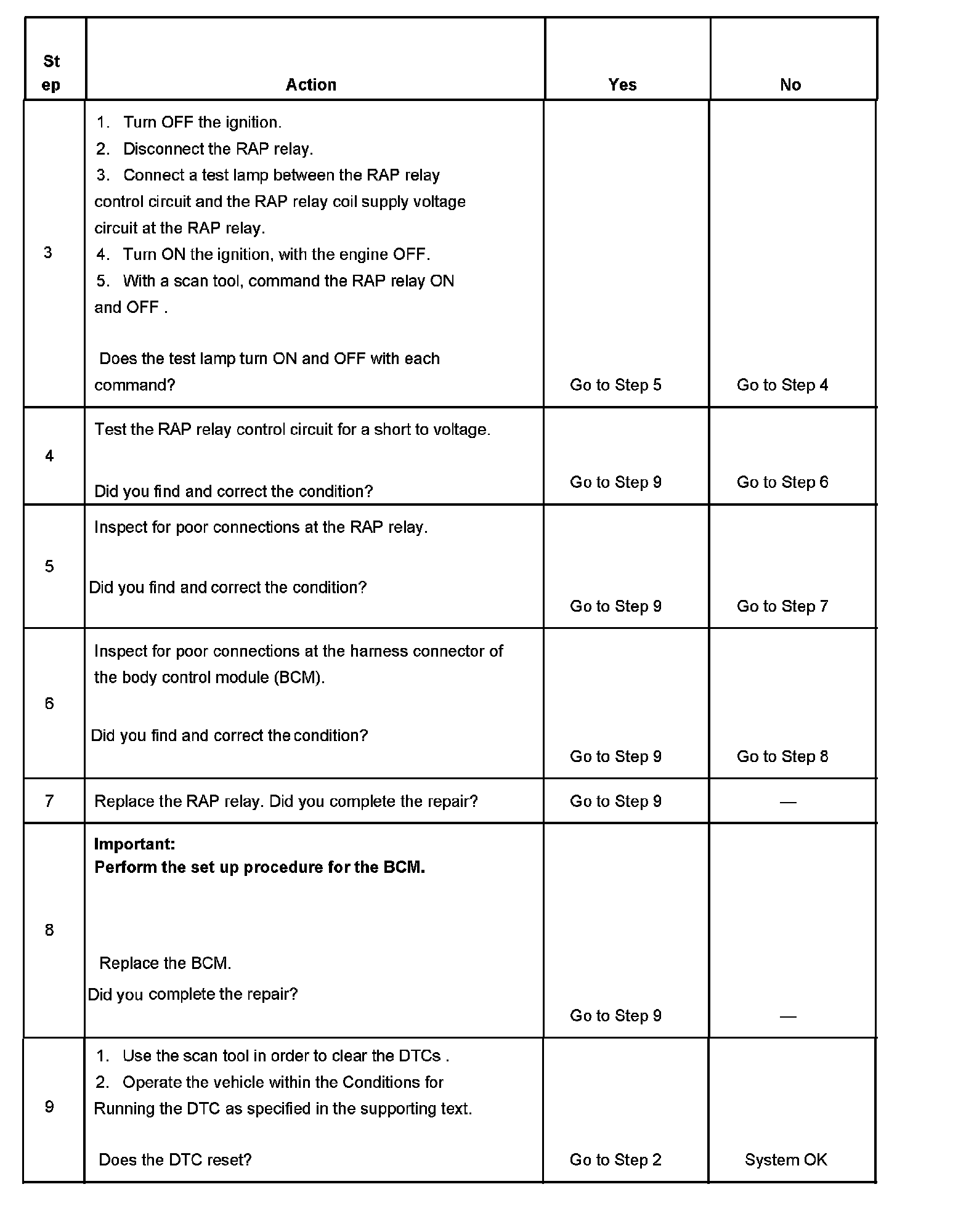 - The BCM detects a short to battery in the RAP relay control circuit when the BCM is trying to energize the RAP relay.