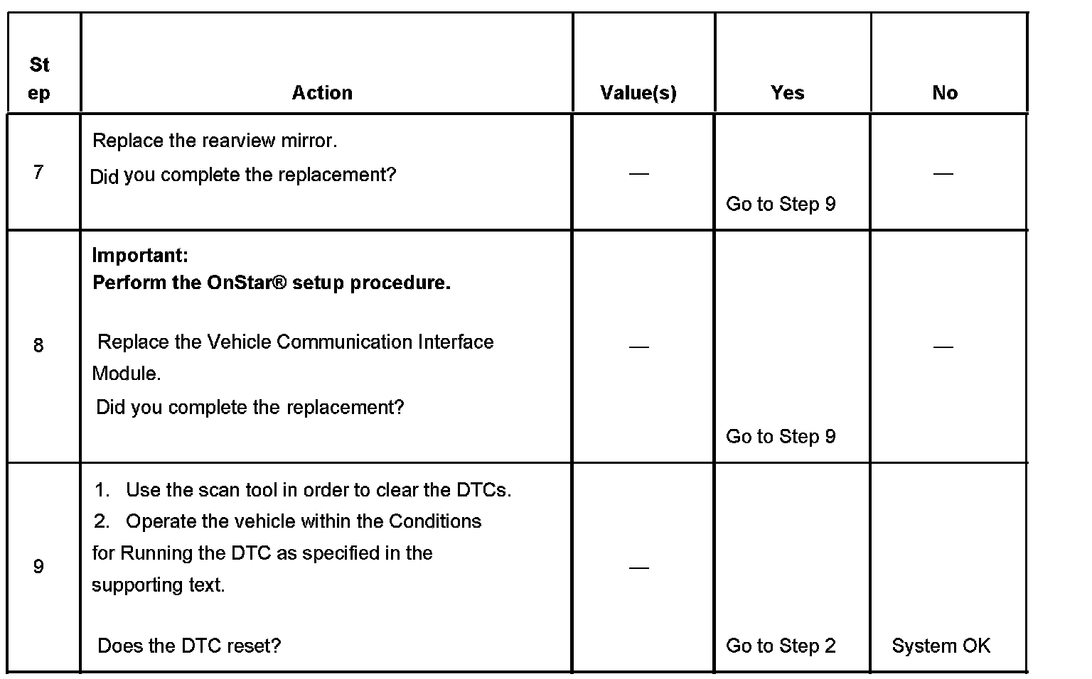 The number refers to the step number on the diagnostic table.