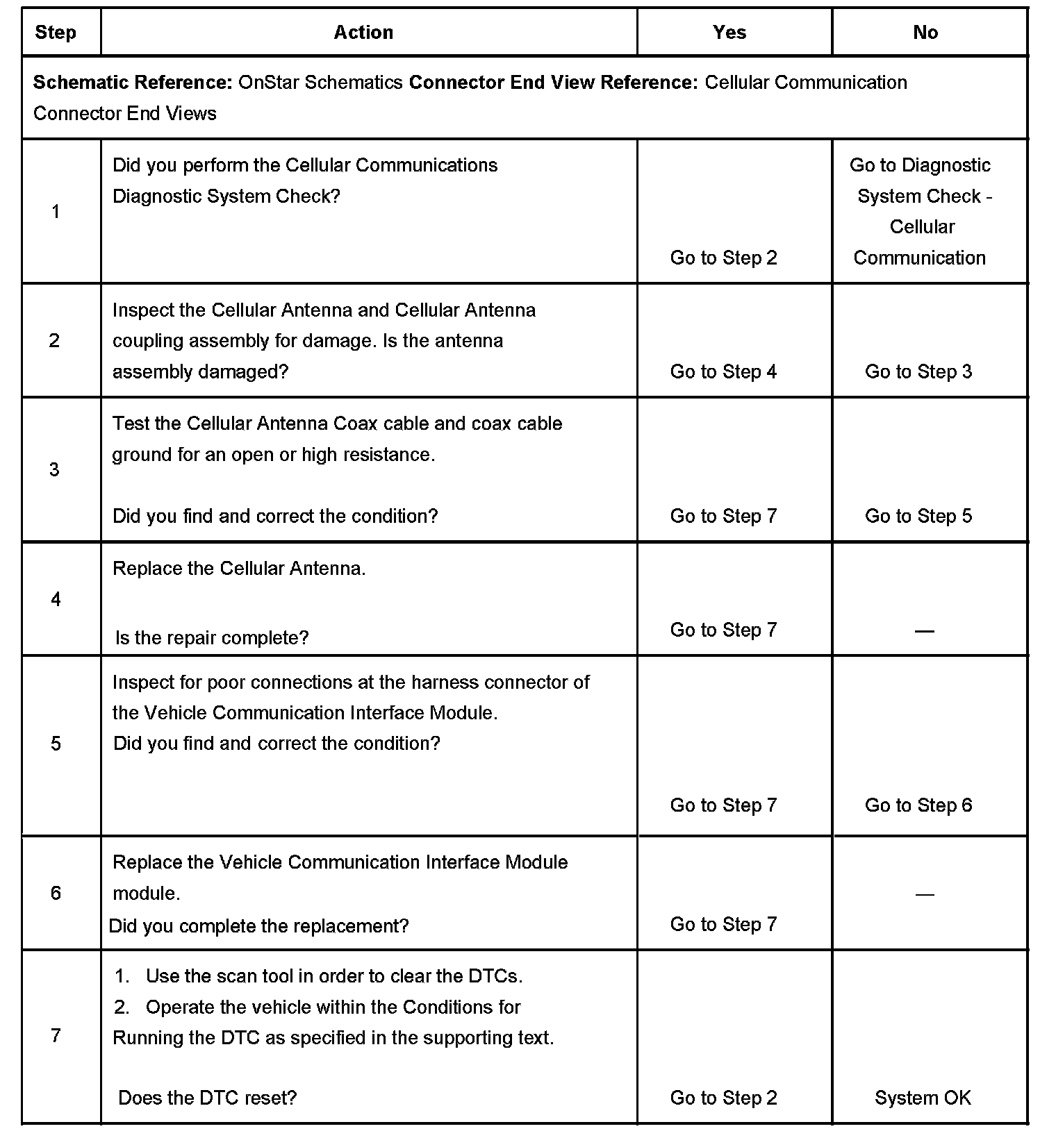 - The Vehicle Communication Interface Module does not detect a cellular signal.