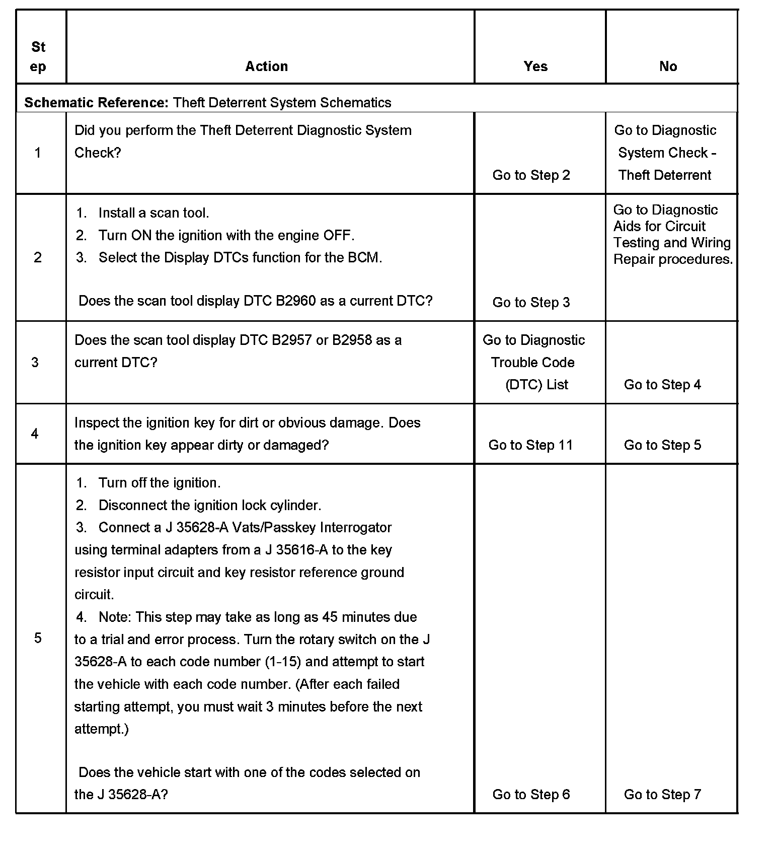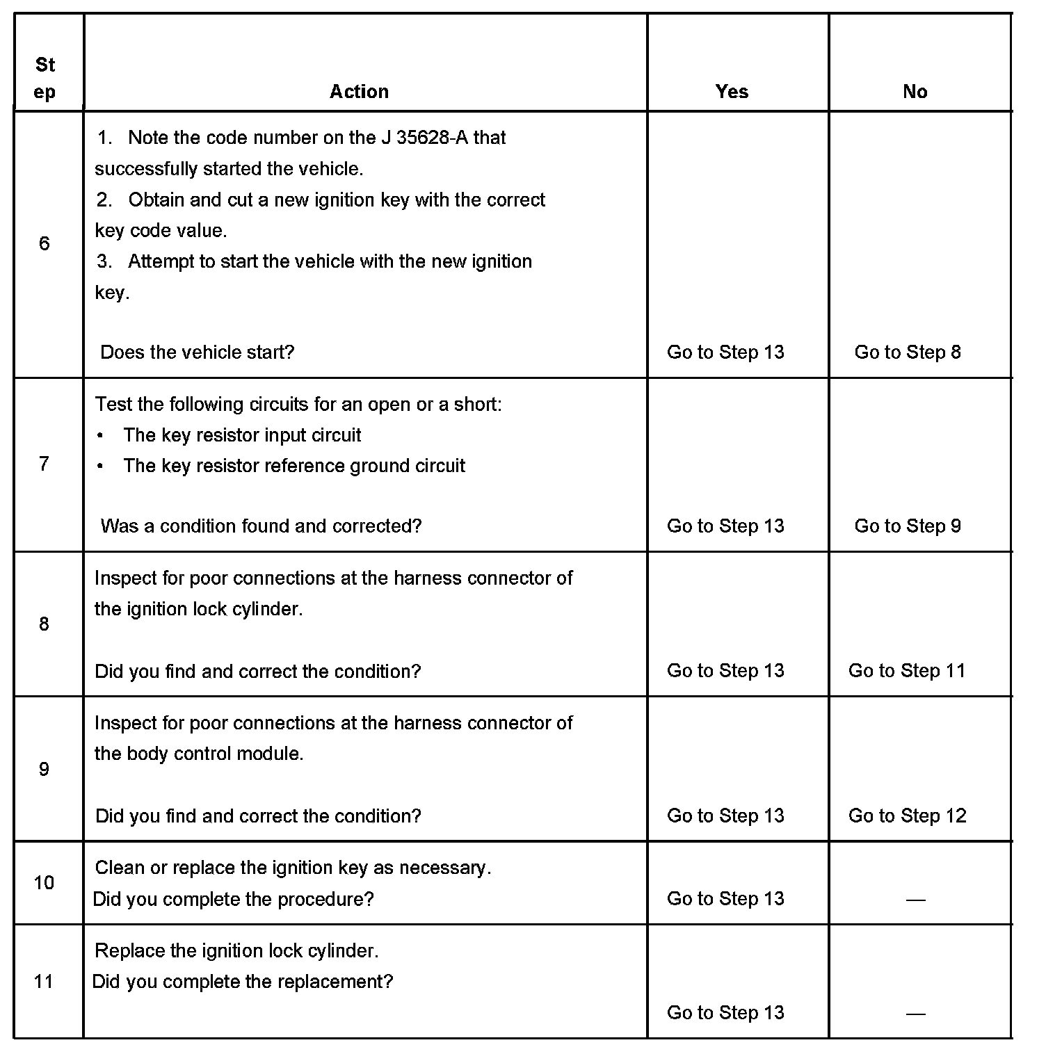 4. Tests for an intermittent or incorrect PASS-Key Resister reading due to an incorrect or malfunctioning ignition key.