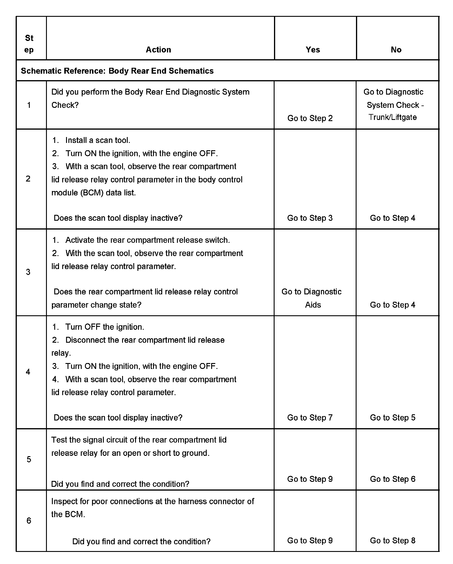4. Tests for a short to ground in the rear compartment lid release relay circuit.