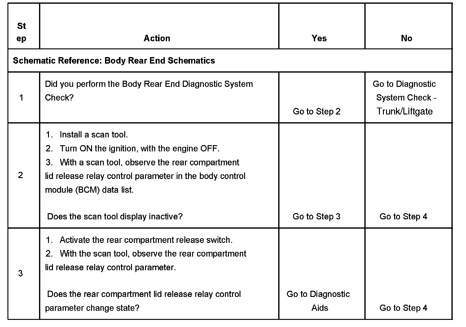 The BCM must be commanding the rear compartment lid release relay to energize.