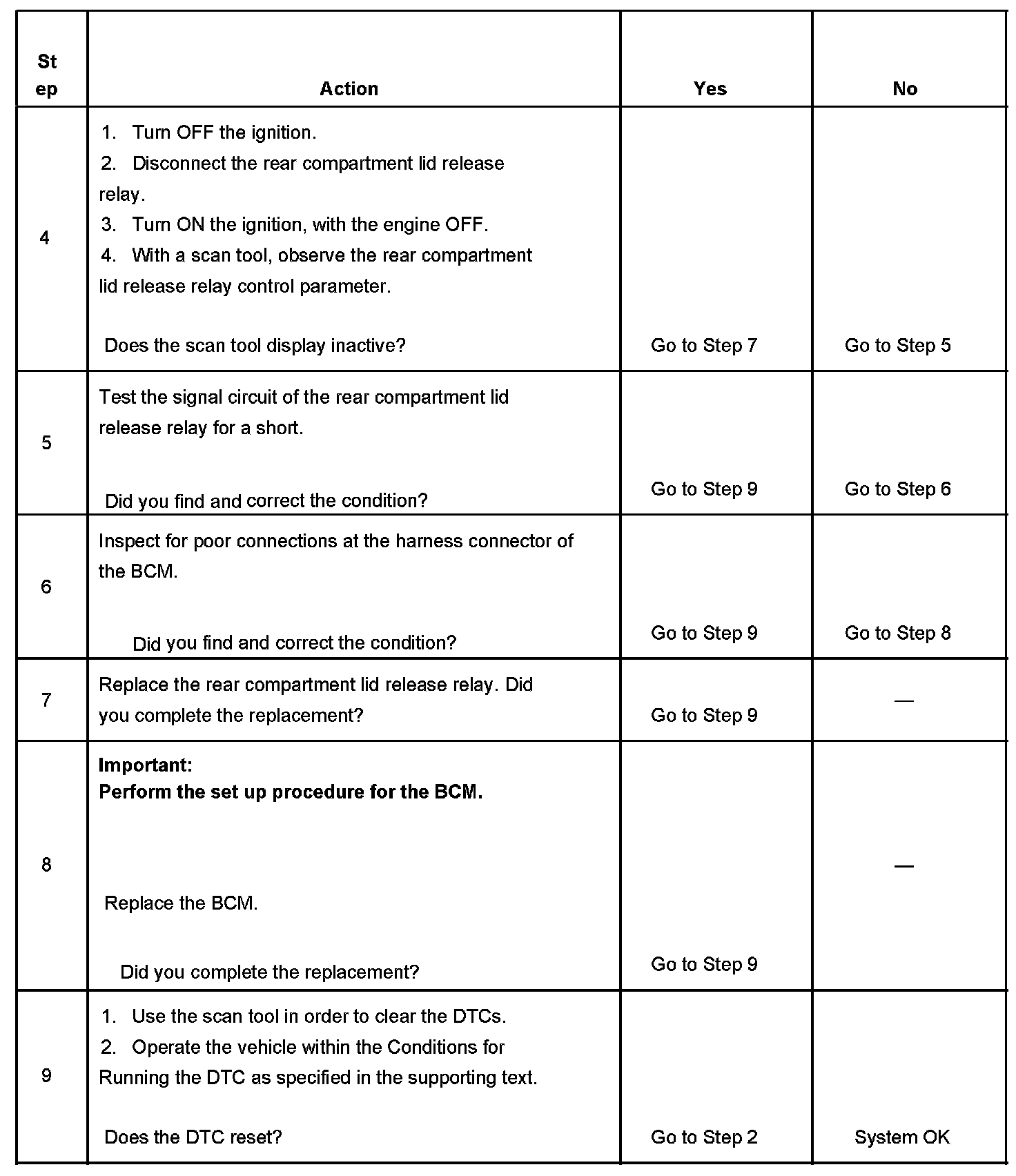 4. Tests for a short to ground in the rear compartment lid release relay circuit.
