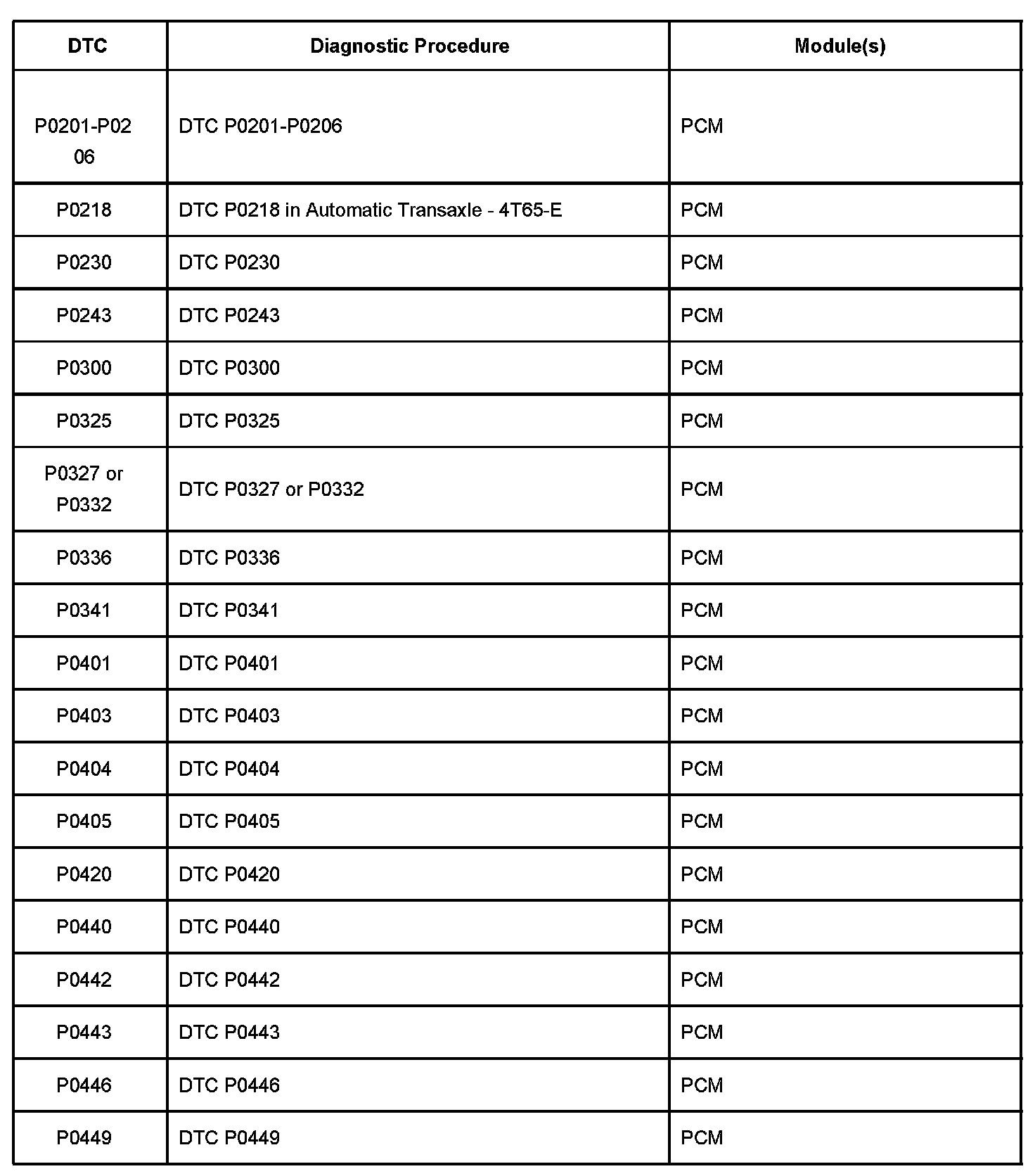 P0201-P0206 - P0449: