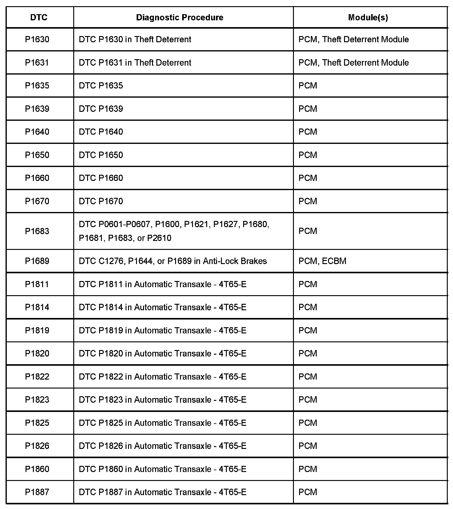 A L L Diagnostic Trouble Codes ( DTC )