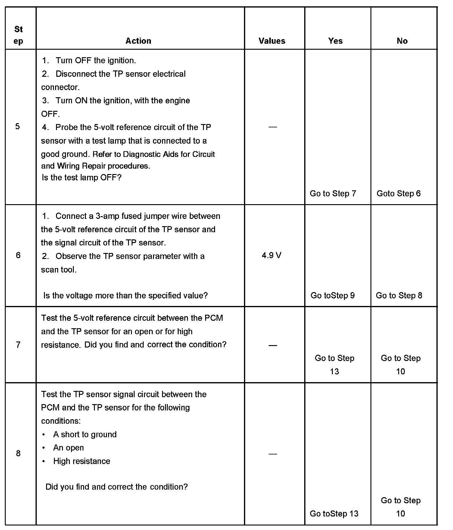5. This step determines if the 5 volts supplied by the PCM is available to the sensor. It also determines if there is sufficient current flow in the circuit.