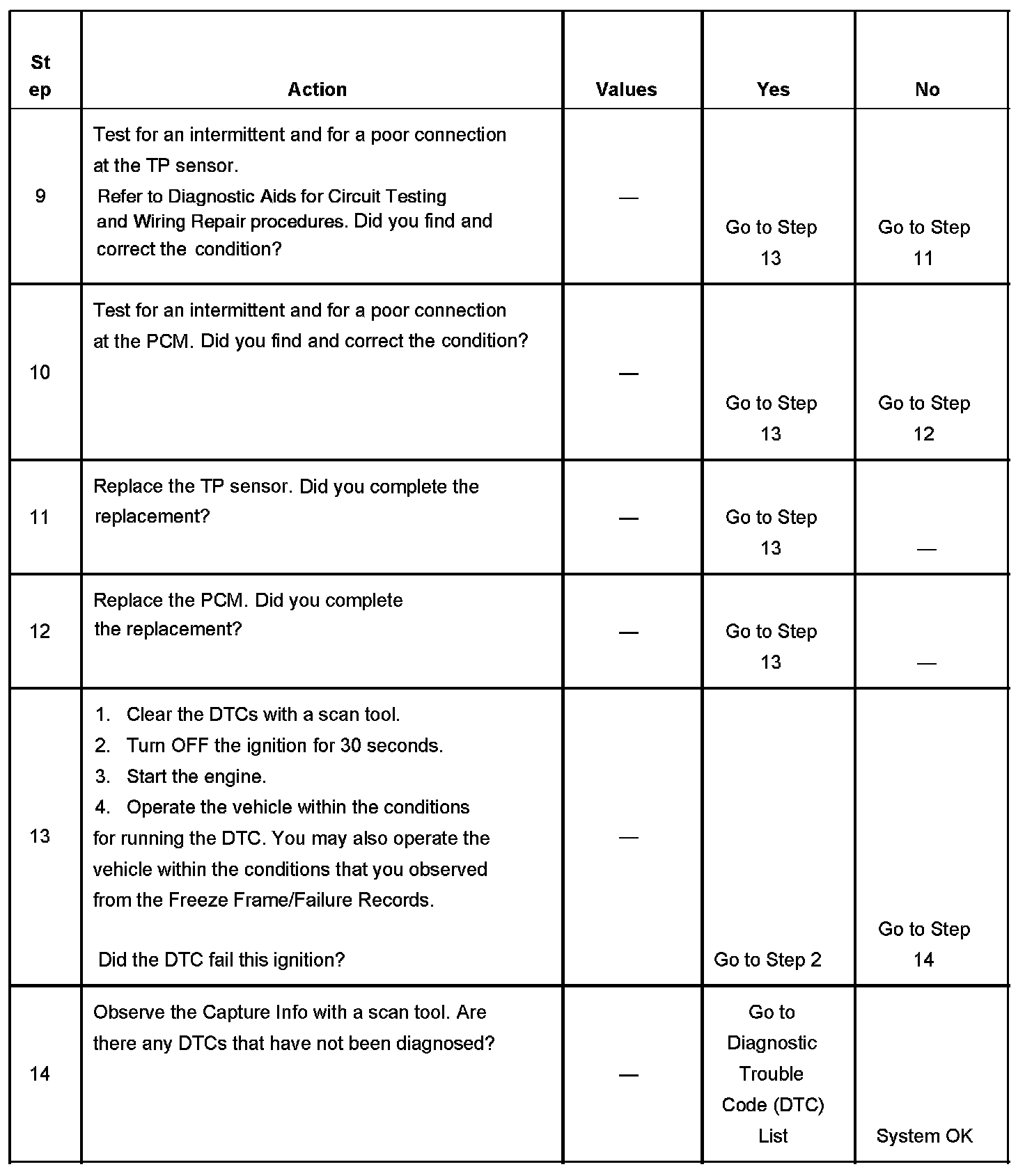 The number below refers to the step number on the diagnostic table.