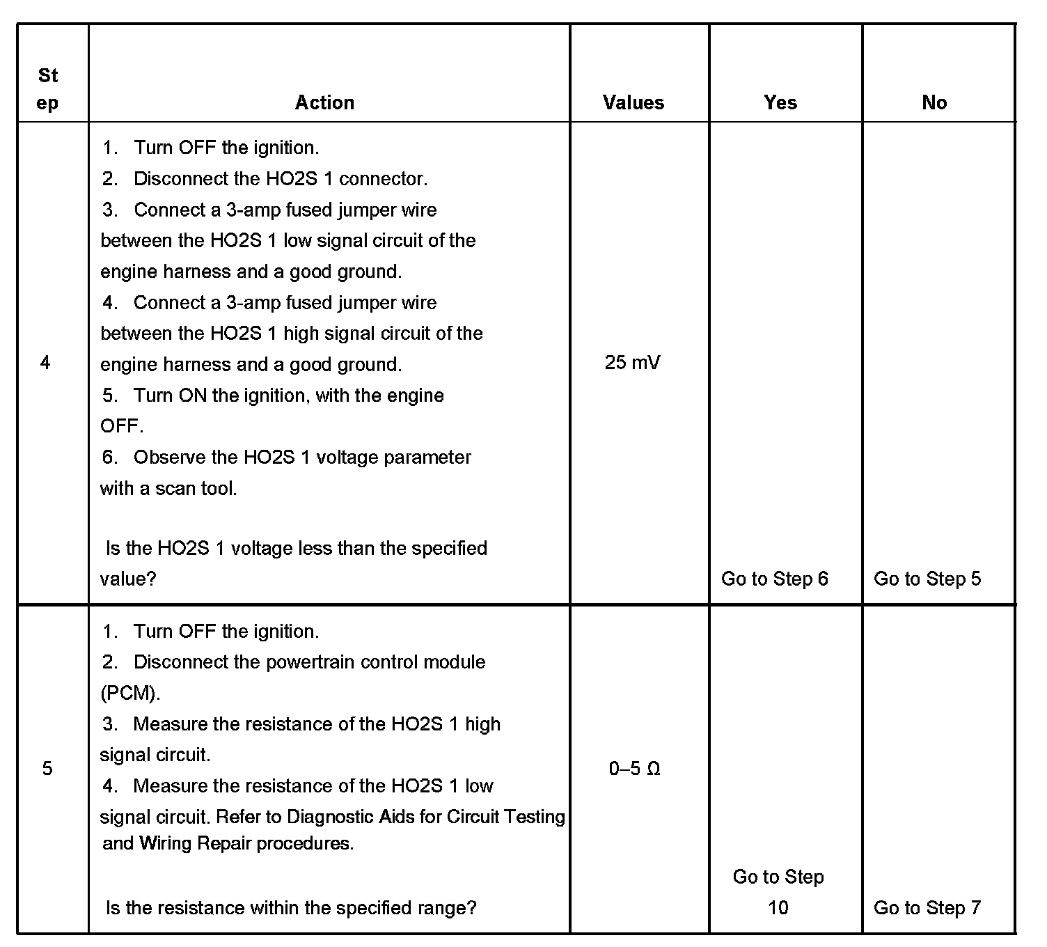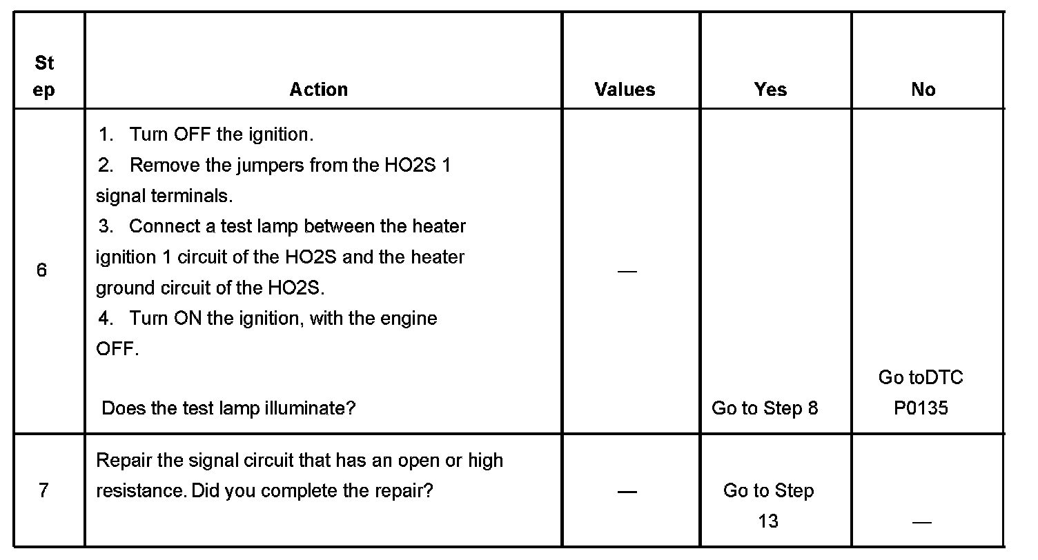 6. This step verifies that there are functional HO2S 1 heater power and ground circuits.