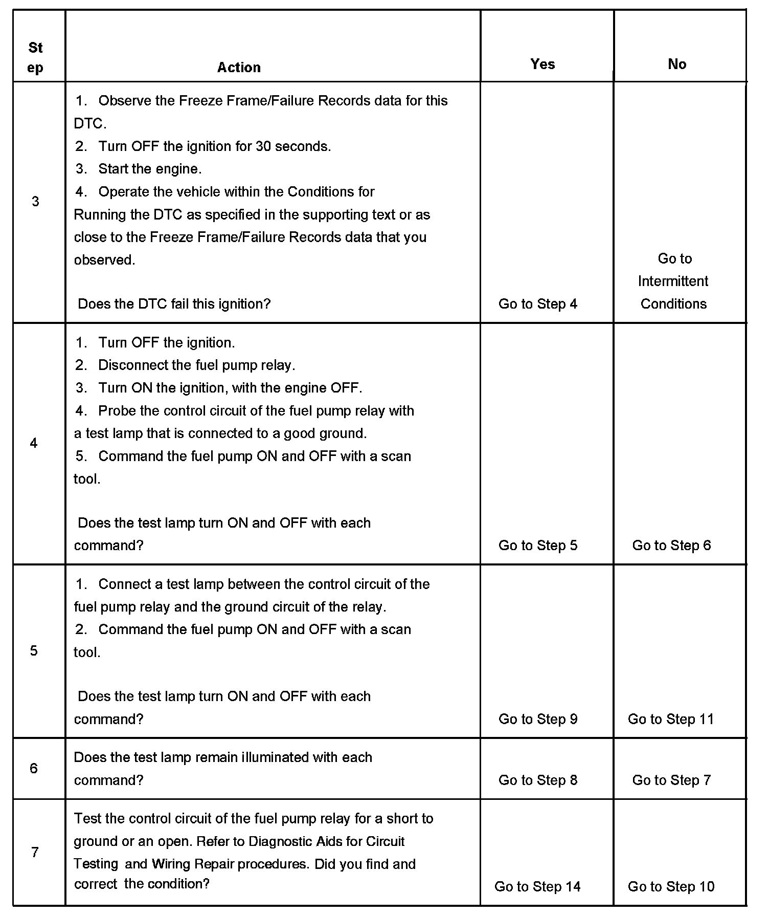 - The PCM detects an incorrect voltage on the control circuit of the fuel pump relay.