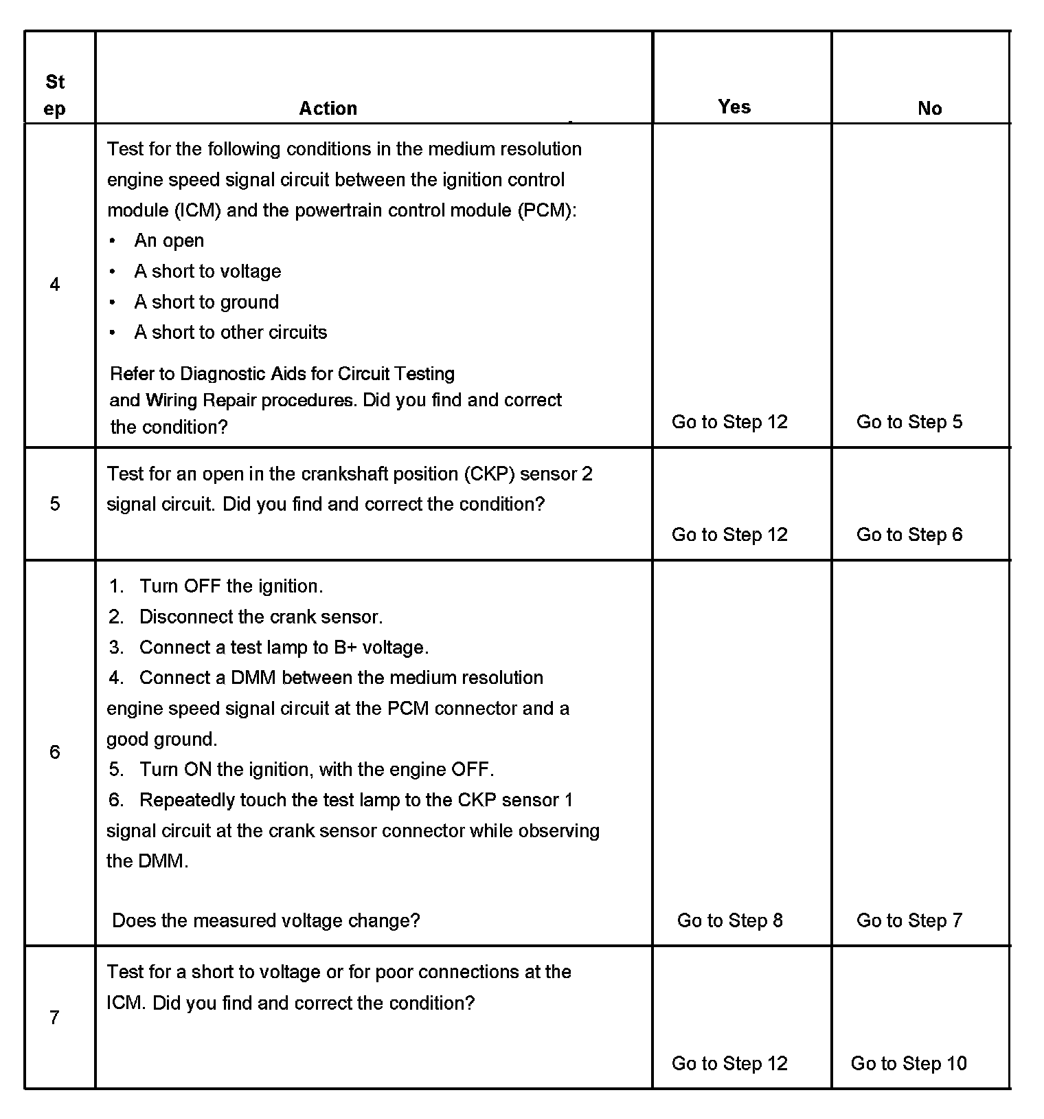 - The CKP sensor 1 signal circuit