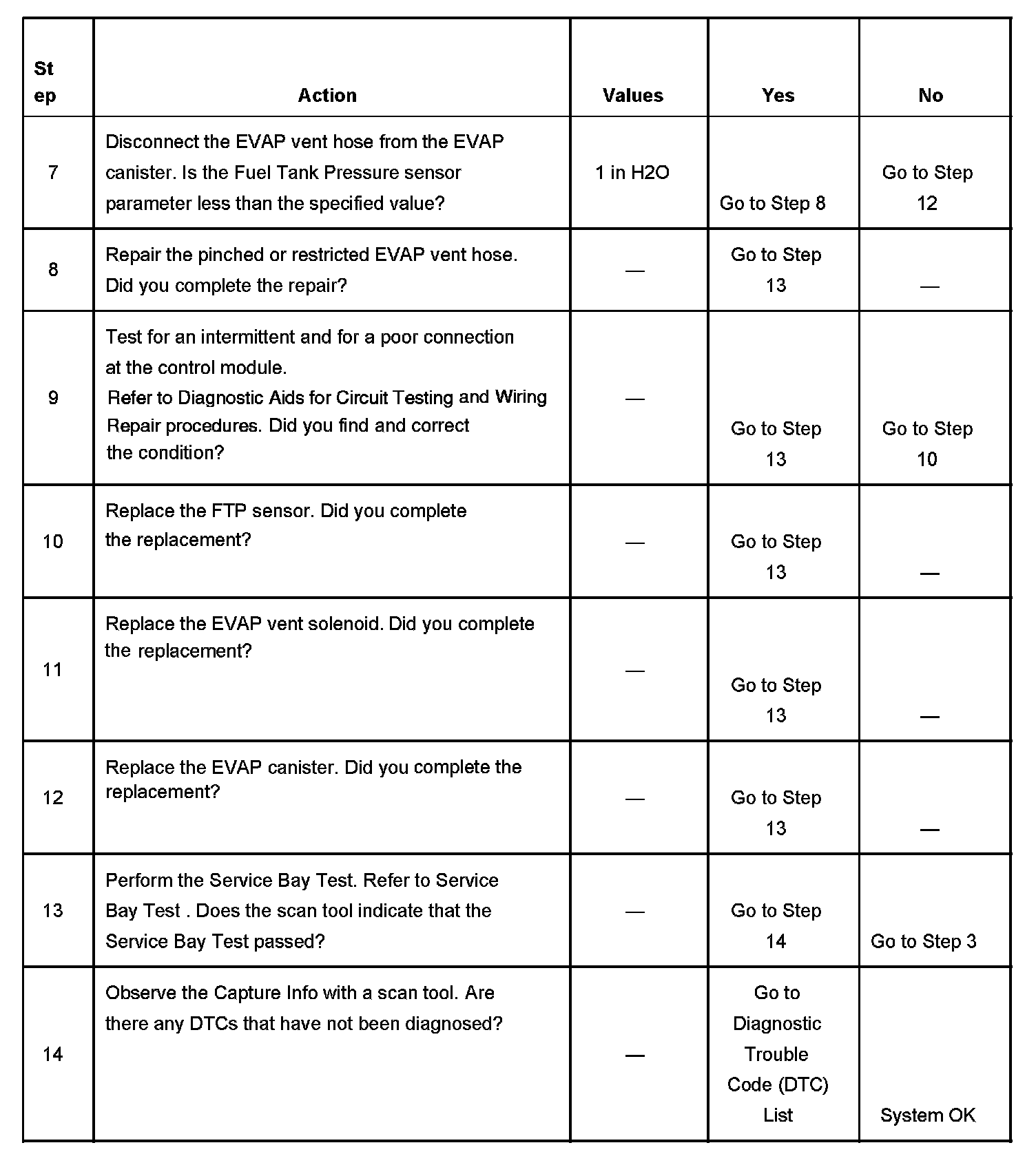 The number below refers to the step number on the diagnostic table.