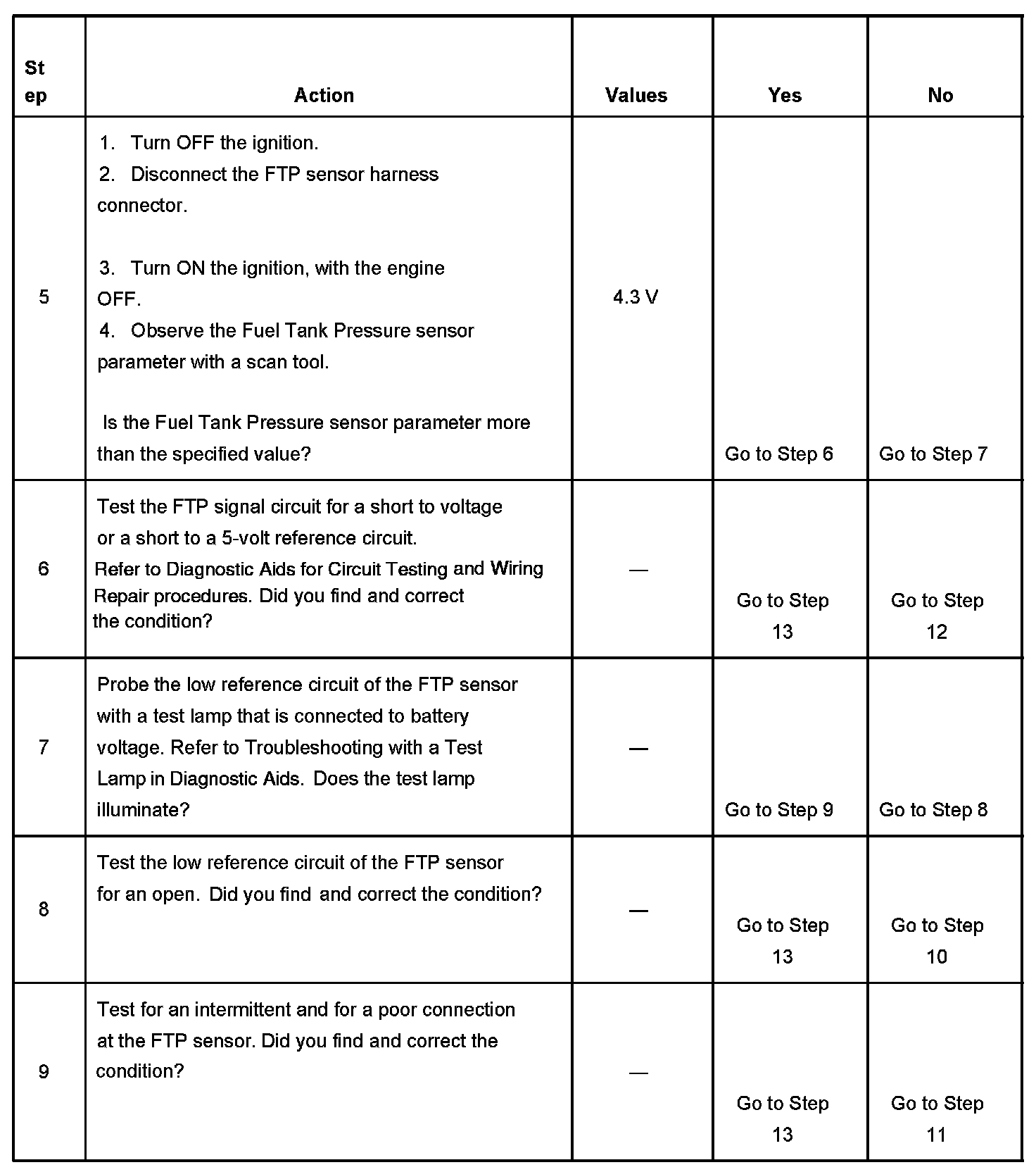 - The FTP sensor voltage is more than 4.9 volts.