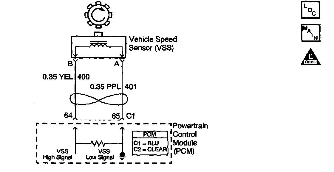 The Vehicle Speed Sensor (VSS) system is a pulse generator consisting of a speed sensor assembly, located in the case extension, and a toothed vehicle speed sensor reluctor wheel, which is pressed onto the final drive carrier assembly. As the vehicle drives forward, the vehicle speed sensor reluctor wheel rotates. This rotation produces a variable AC signal in the pickup coil that is proportional to vehicle speed. The PCM uses this signal in order to calculate vehicle speed, shift timing and gear ratios.