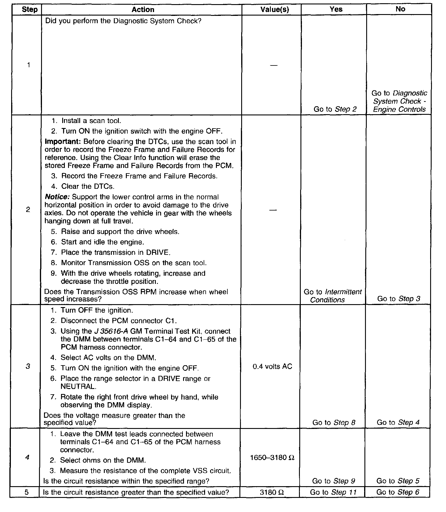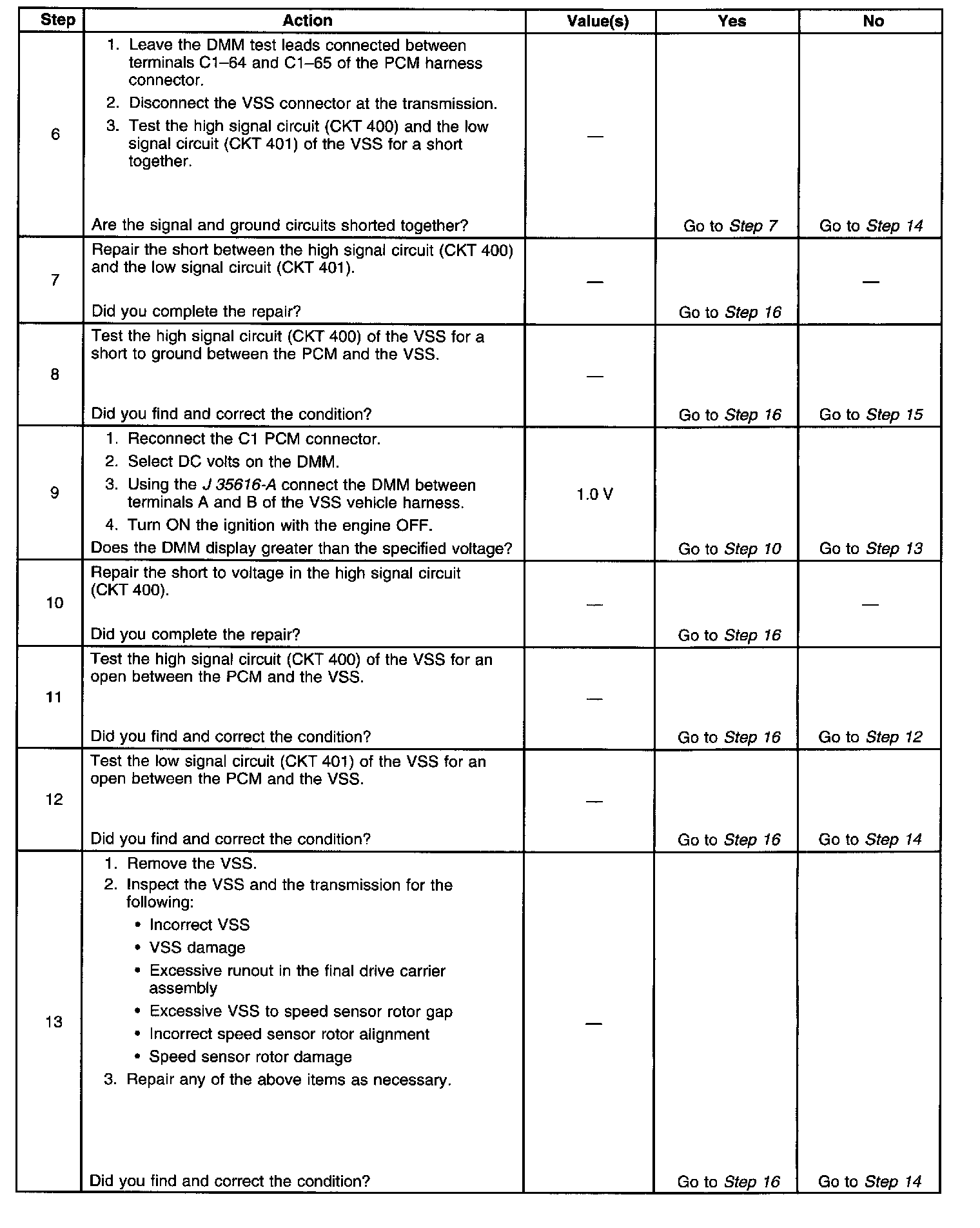 3. This step tests the ability of the VSS to produce an AC voltage. This step also verifies the integrity of the wiring to the PCM.
