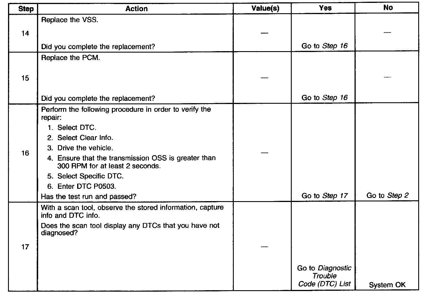 ^ The PCM stores DTC P0503 in PCM history during the second consecutive trip in which the Conditions for Setting the DTC are met.