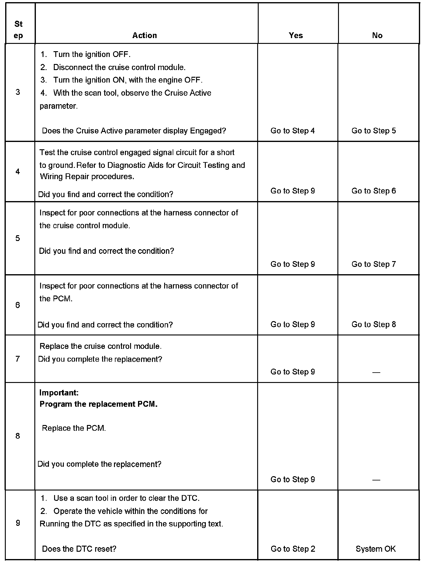 - The PCM detects a cruise control engaged signal from the cruise control module, while inhibiting cruise control operation.