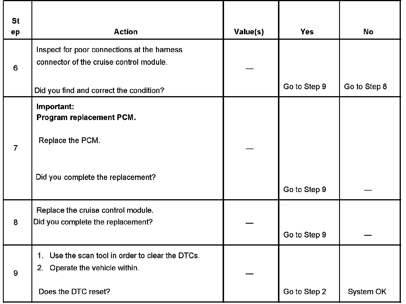 - The PCM detects that an improper voltage exists on the cruise control inhibit signal circuit.