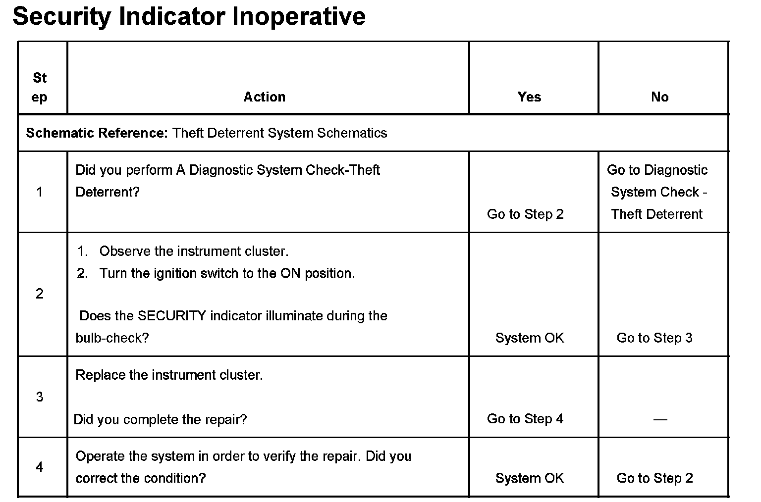 SECURITY Indicator Inoperative