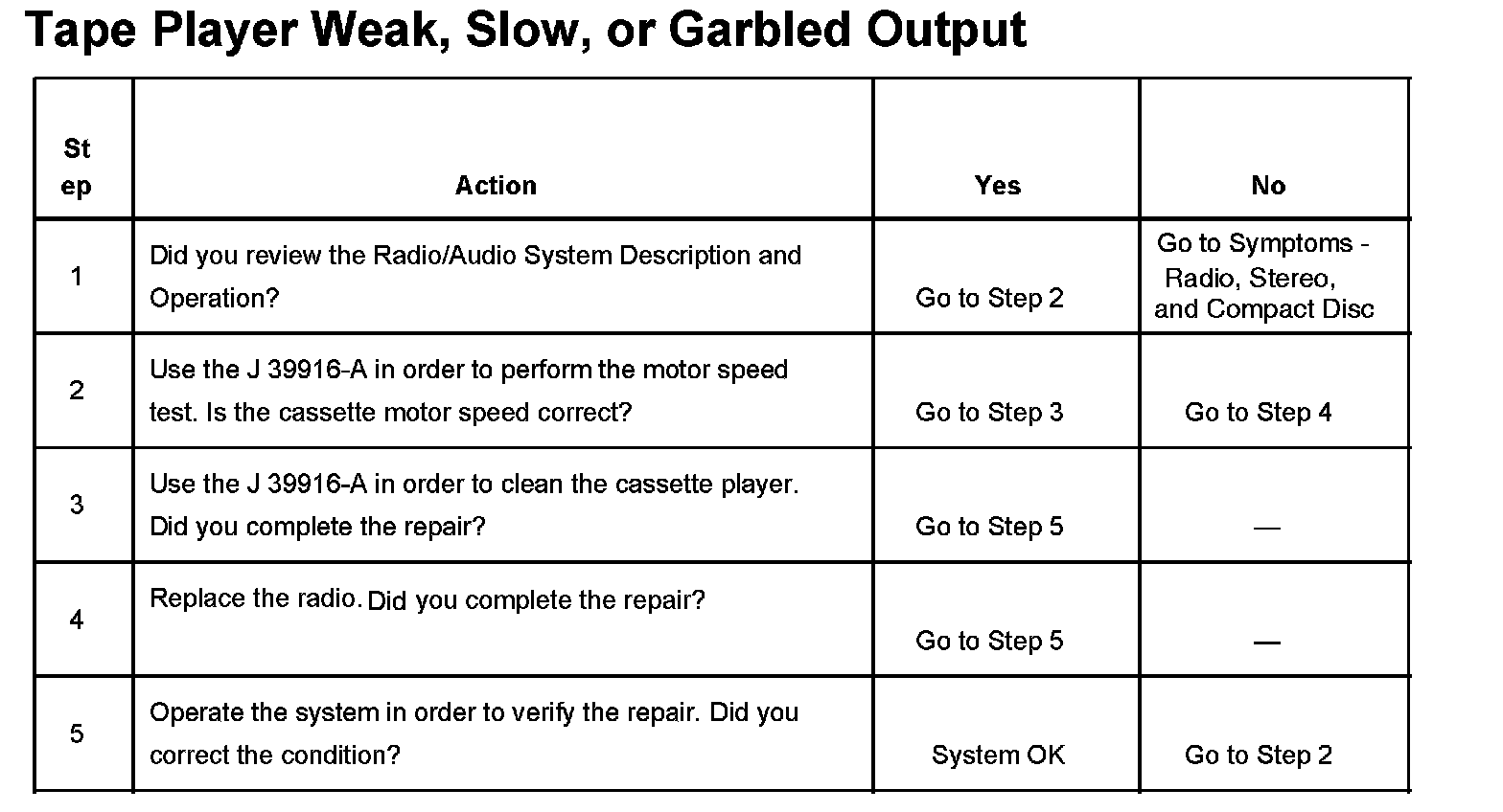 Tape Player Weak, Slow, or Garbled Output