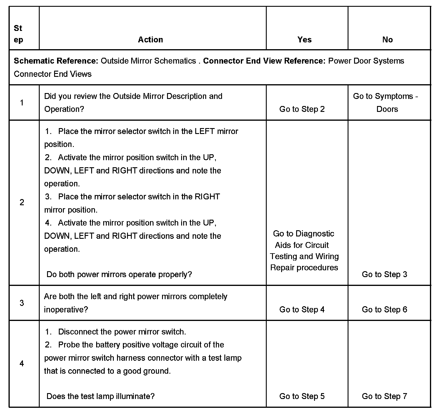 POWER MIRRORS INOPERATIVEDIAGNOSTIC AIDS