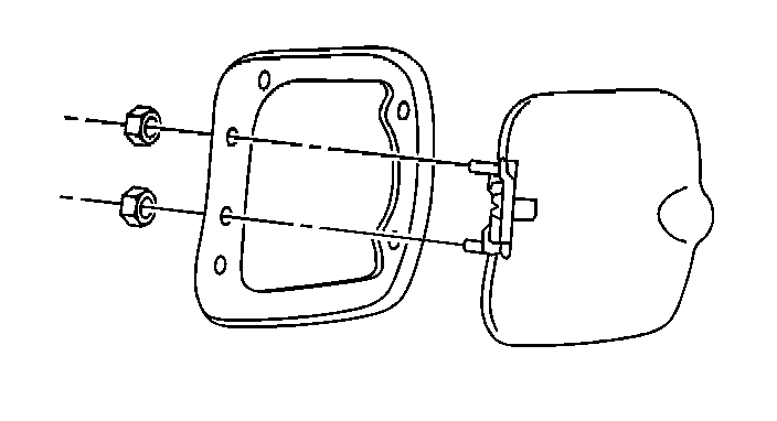 2. Install the nuts inside of the quarter panel to the studs on the fuel filler door.