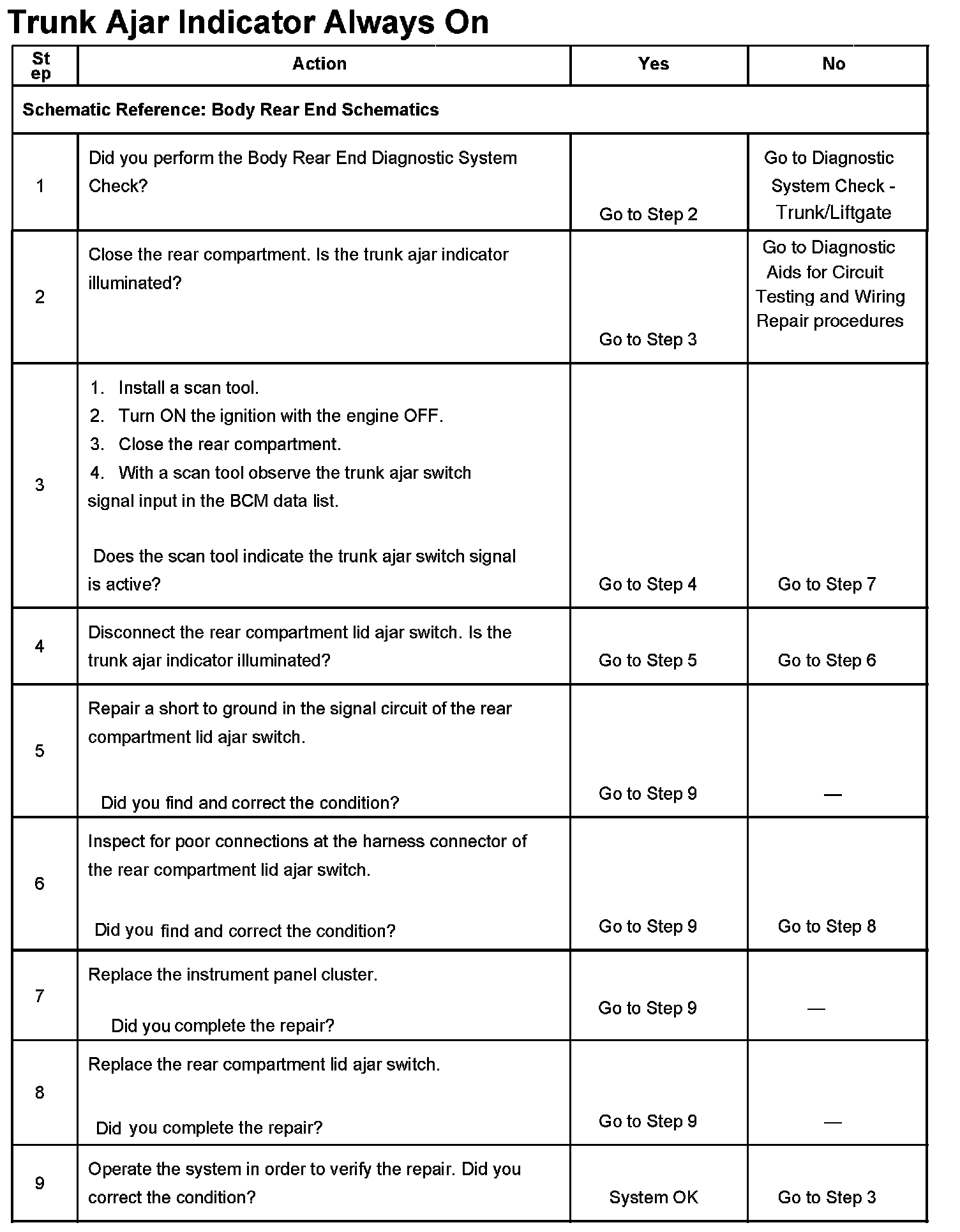 Trunk Ajar Indicator Always On