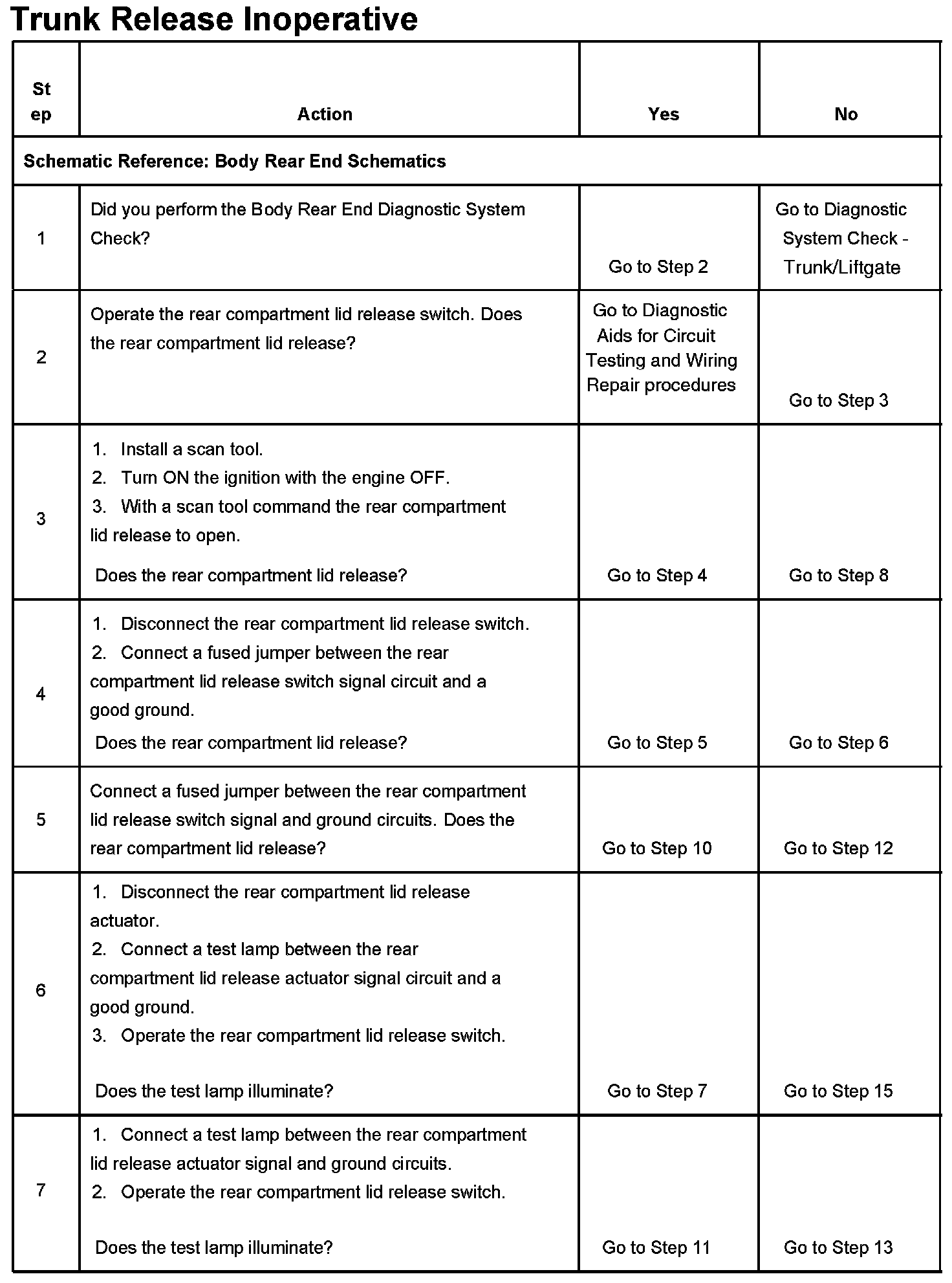 Trunk Release Inoperative