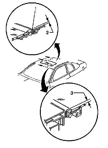 5. Adjust the front of the sunroof window panel to 0.5 mm (0.020 in) below the top surface (3) of the roof panel.