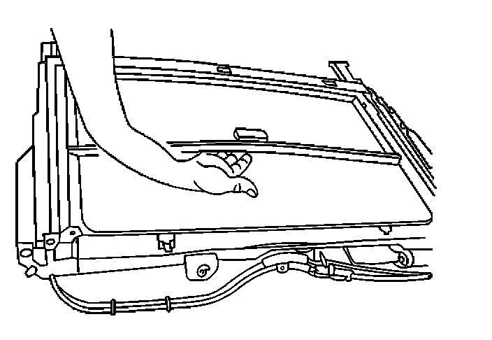 5. Remove the sunshade by bowing the sunshade in the center and pushing the sunshade to one side to allow the opposite side to be lifted out of the sunshade channel.