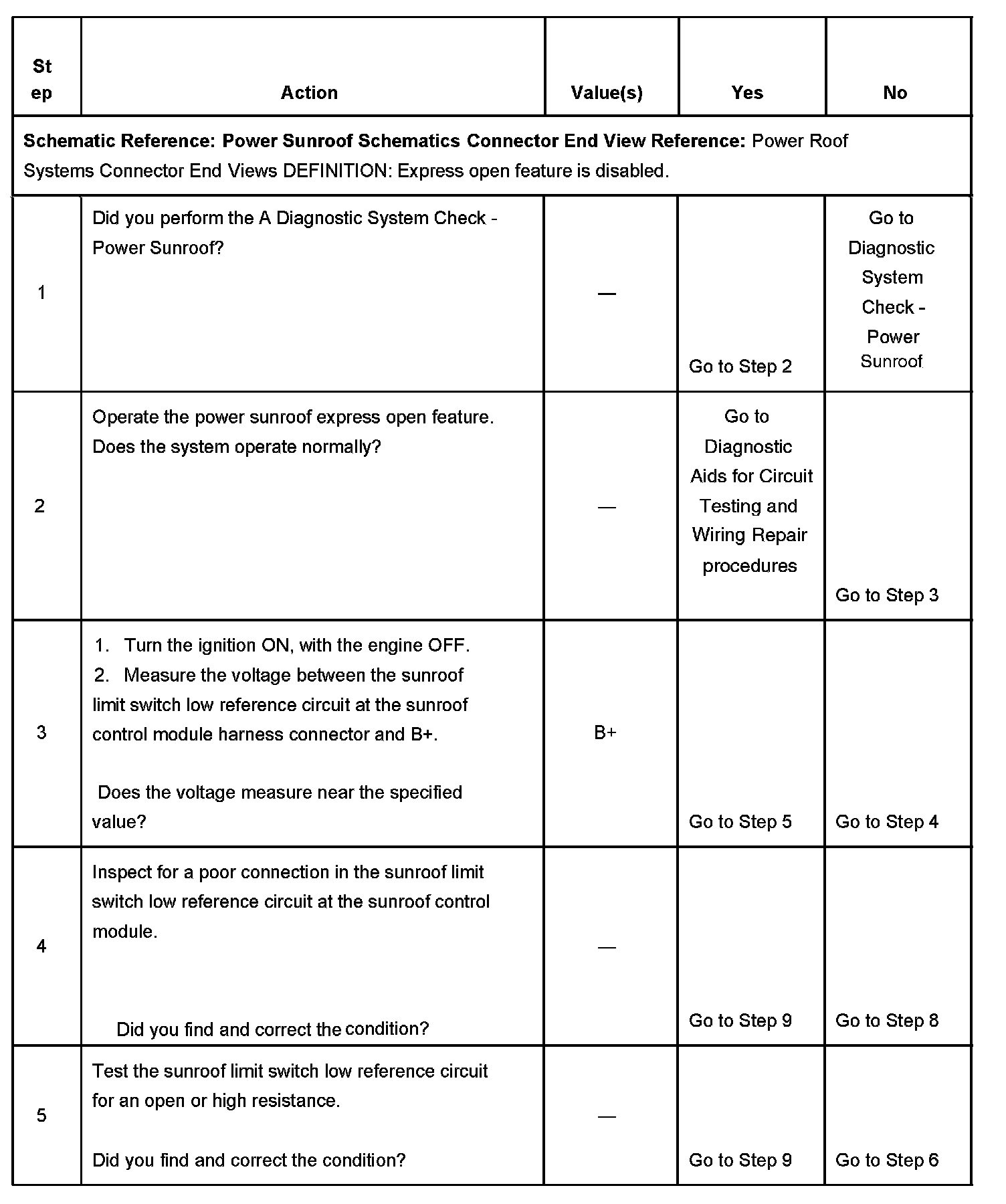 POWER SUNROOF EXPRESS OPEN FEATURE INOPERATIVETEST DESCRIPTION