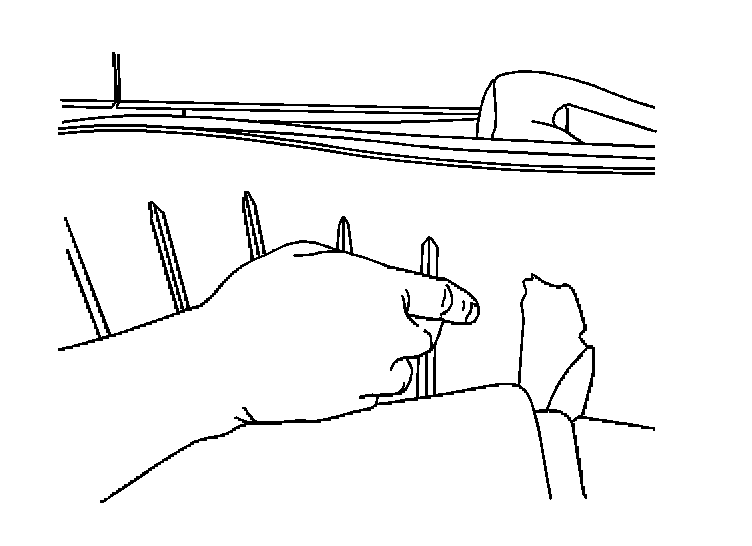 5. Install the seat back cover to the retainer at the side impact airbag, by pressing in and pulling down on the seat back cover.