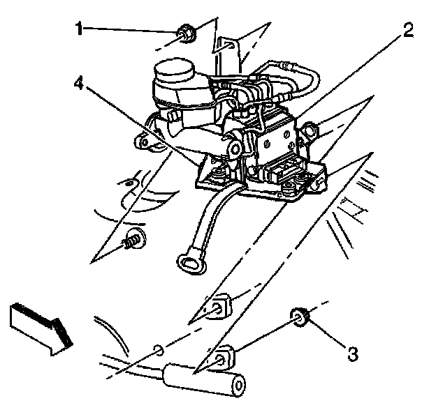 14. Remove the BPMV mounting bracket (4) and EBCM assembly (2) from the vehicle.