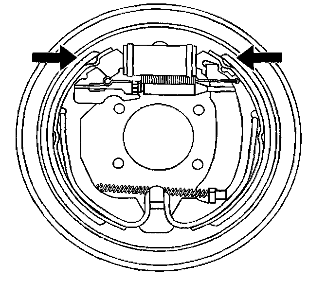 3. Using firm hand pressure, simultaneously and evenly apply force on both brake shoes in order to compress the wheel cylinder pistons into their bore.