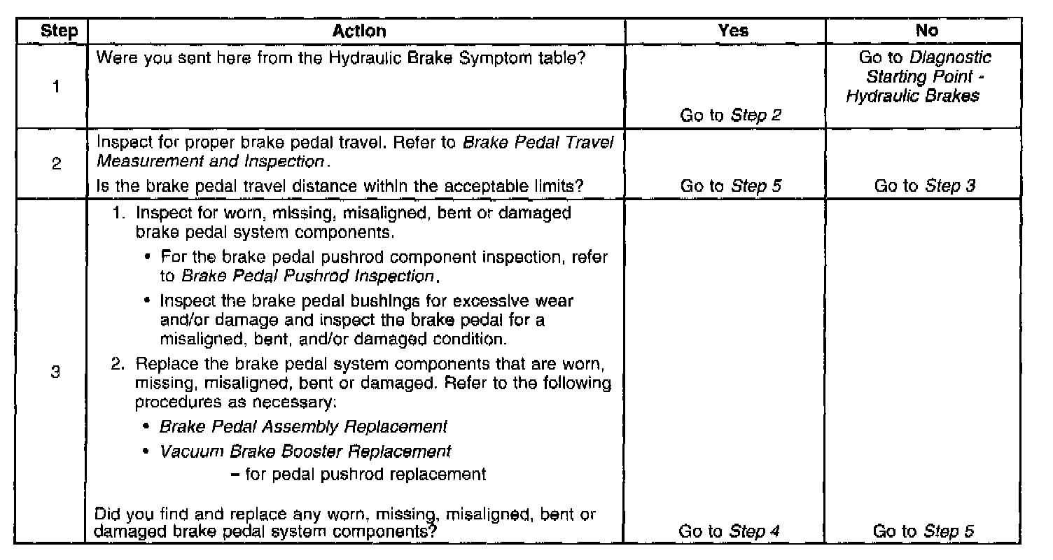 Brake Pedal Excessive Travel