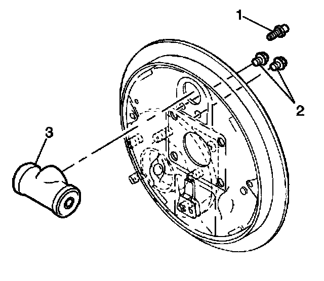 1. Apply THREADLOCKER, GM P/N 12345382, (Canadian P/N 10953489), or equivalent to the wheel cylinder shoulder face that contacts the backing plate.