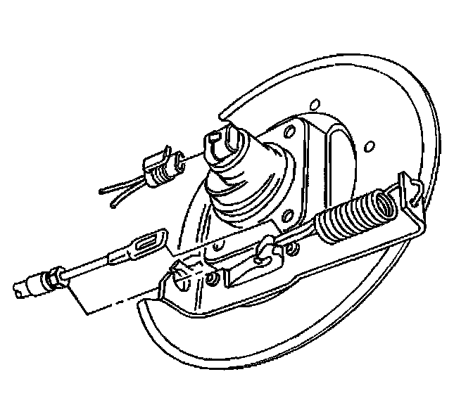 7. Disconnect the park brake cable return spring from the park brake actuator and bracket at the rear wheel.