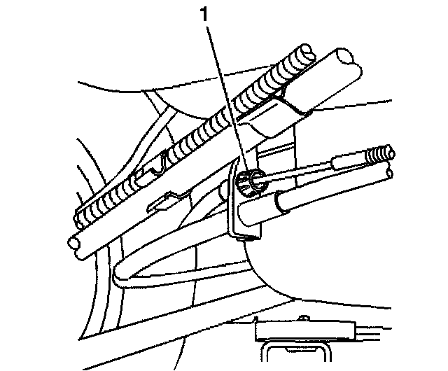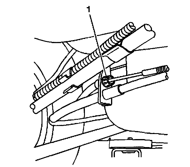 4. Disconnect the retainer (1) that holds the cable to the support bracket. Use the J 37043 to release the retainer.