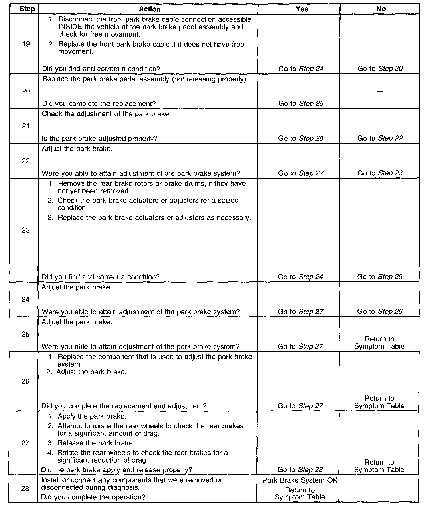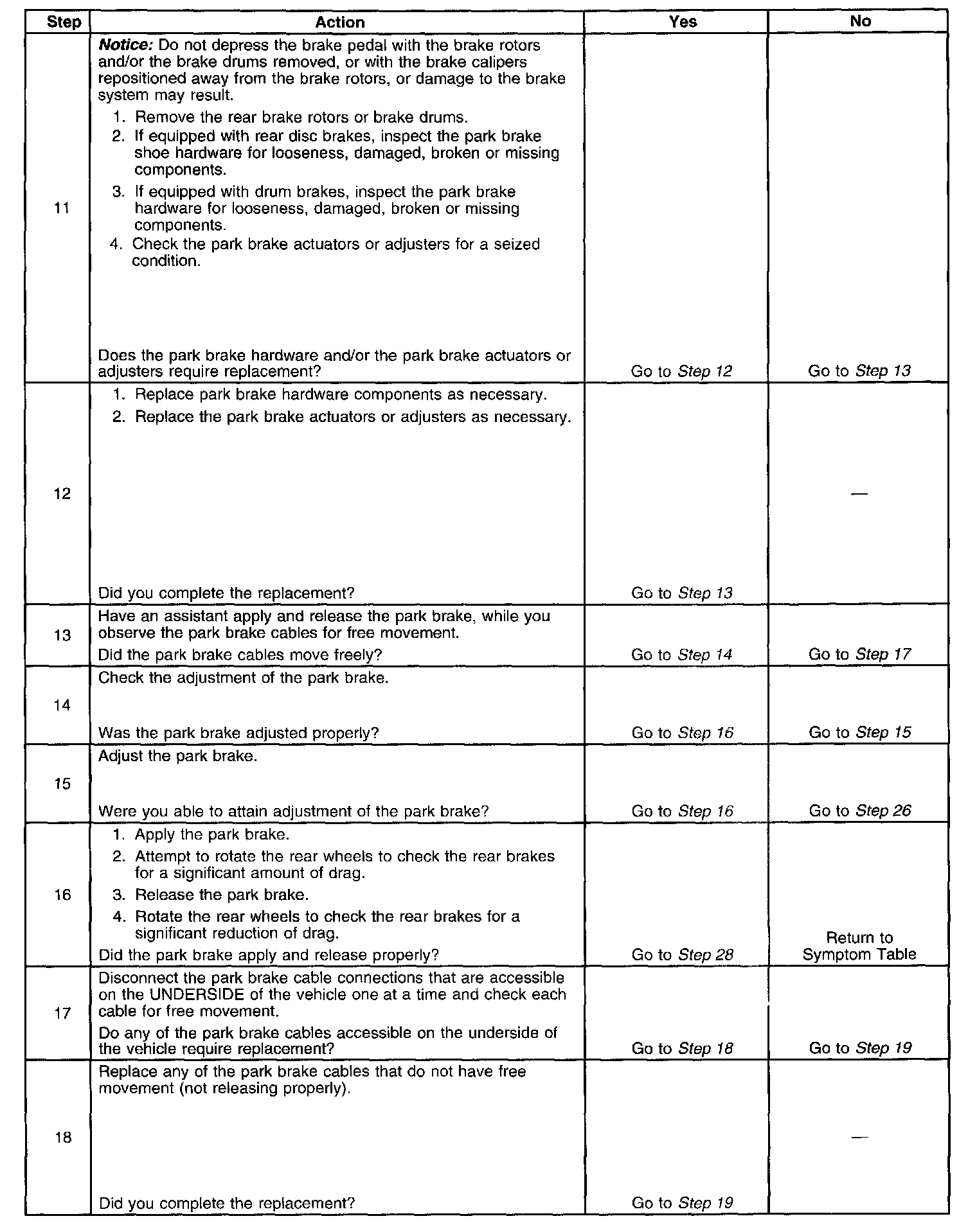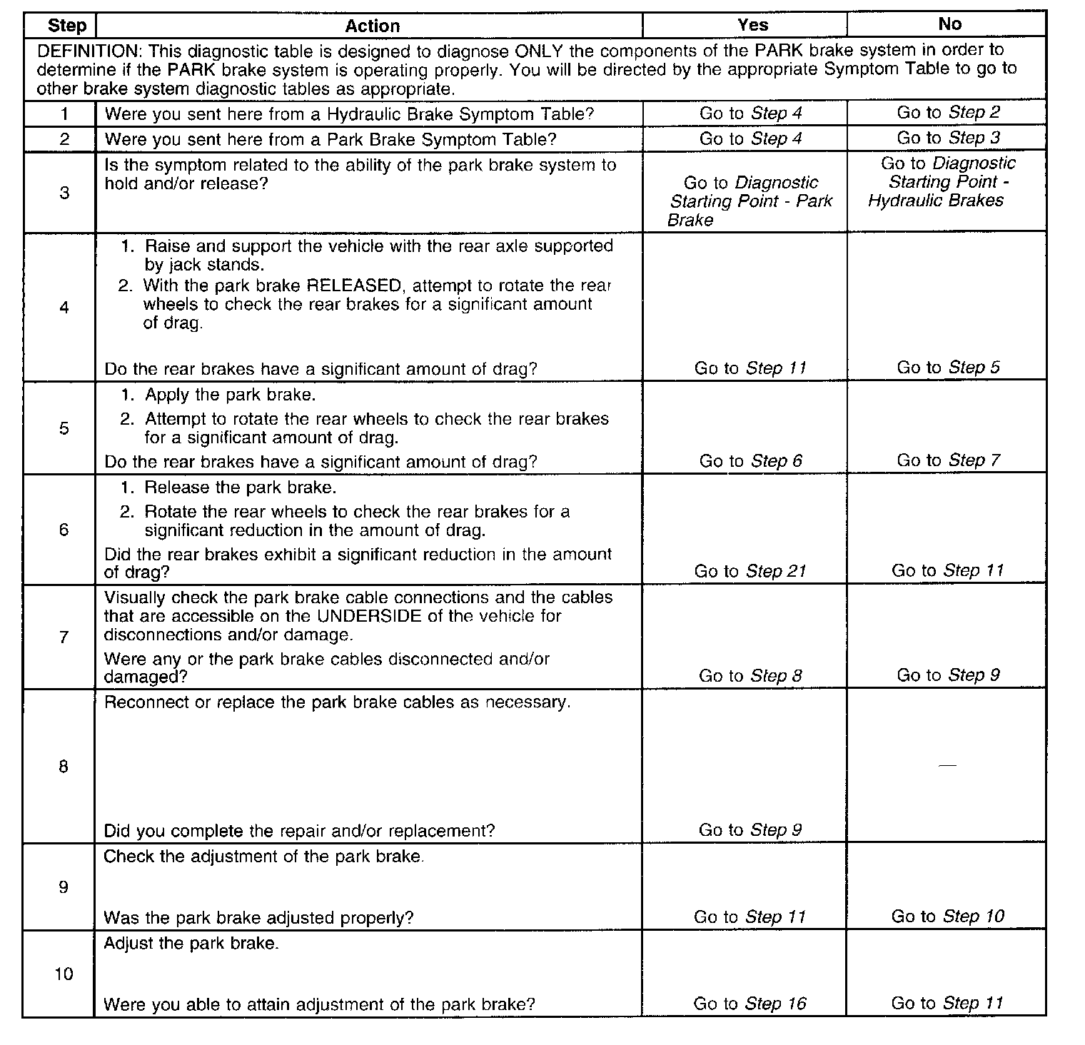 Park Brake System Diagnosis