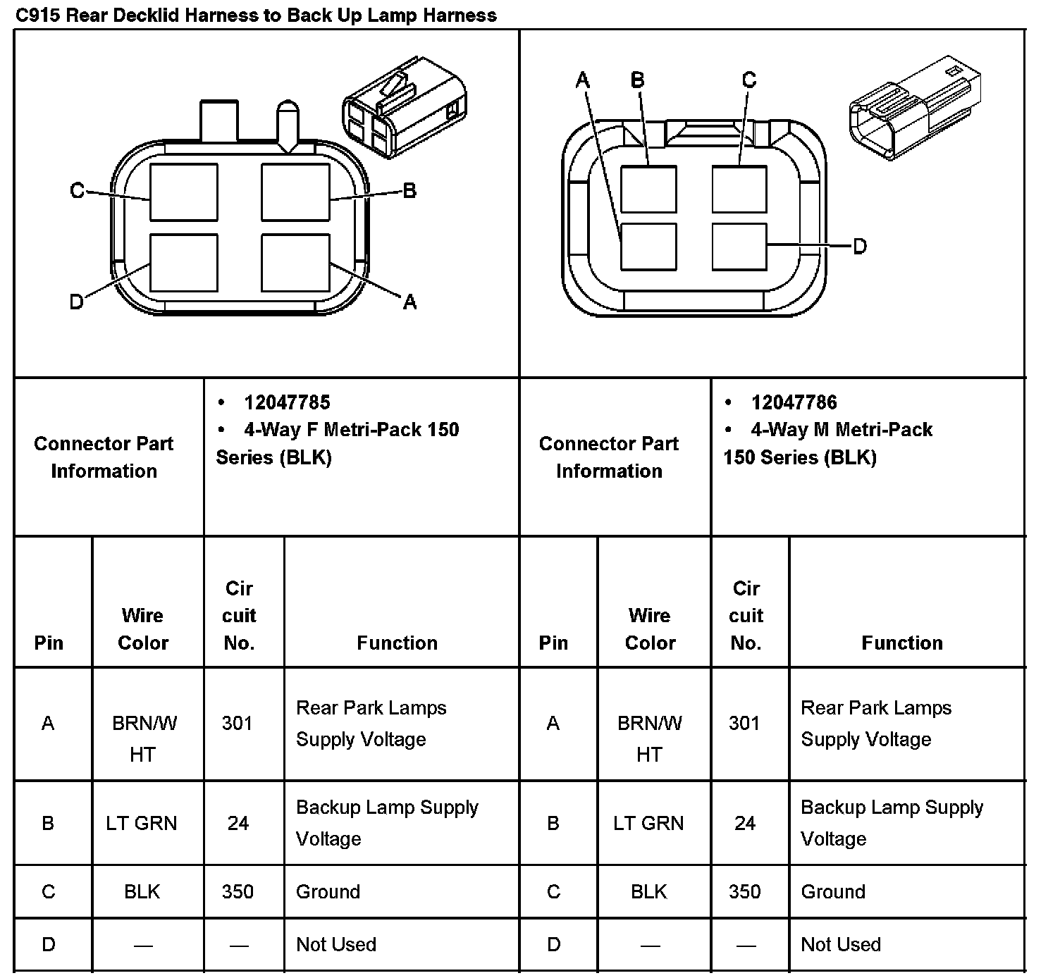 C915 Rear Decklid Harness To Back Up Lamp Harness: