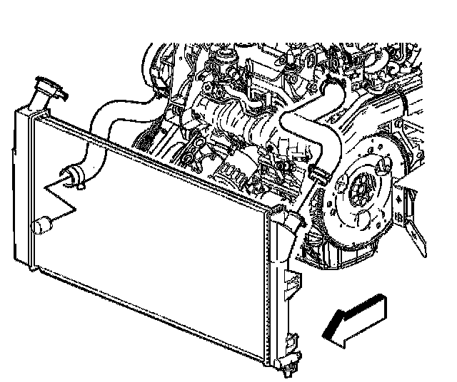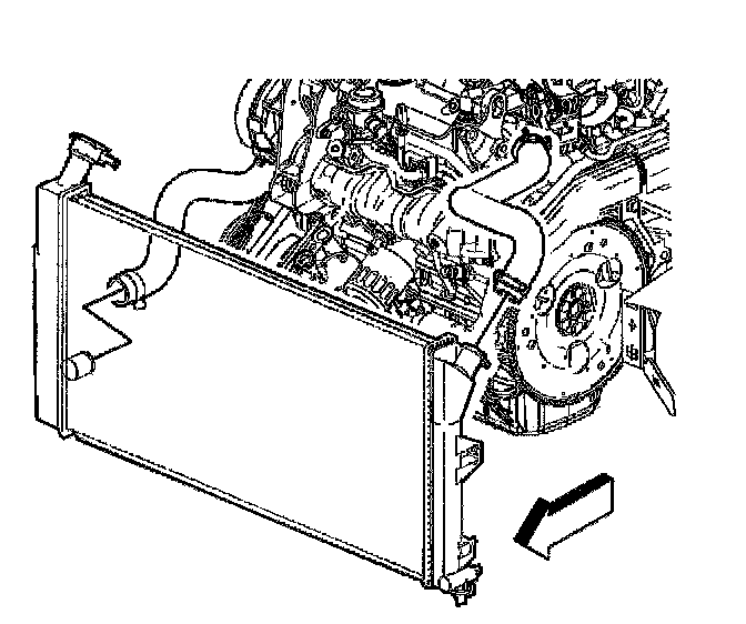 6. Use J 38185 to remove the outlet hose clamp from the radiator.